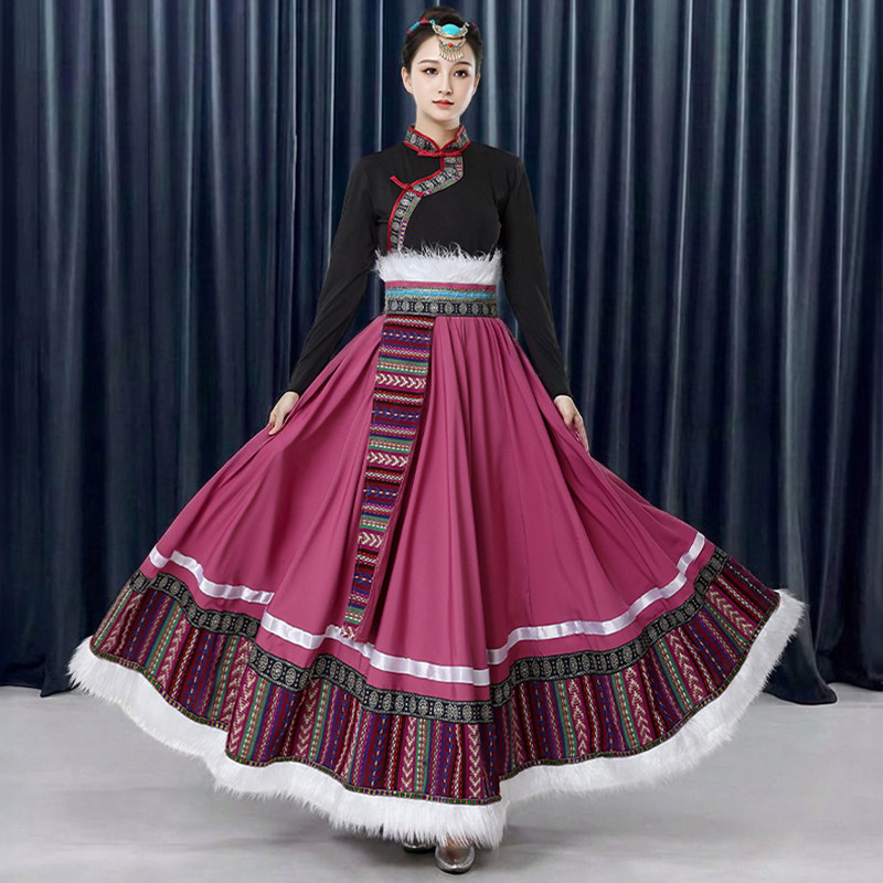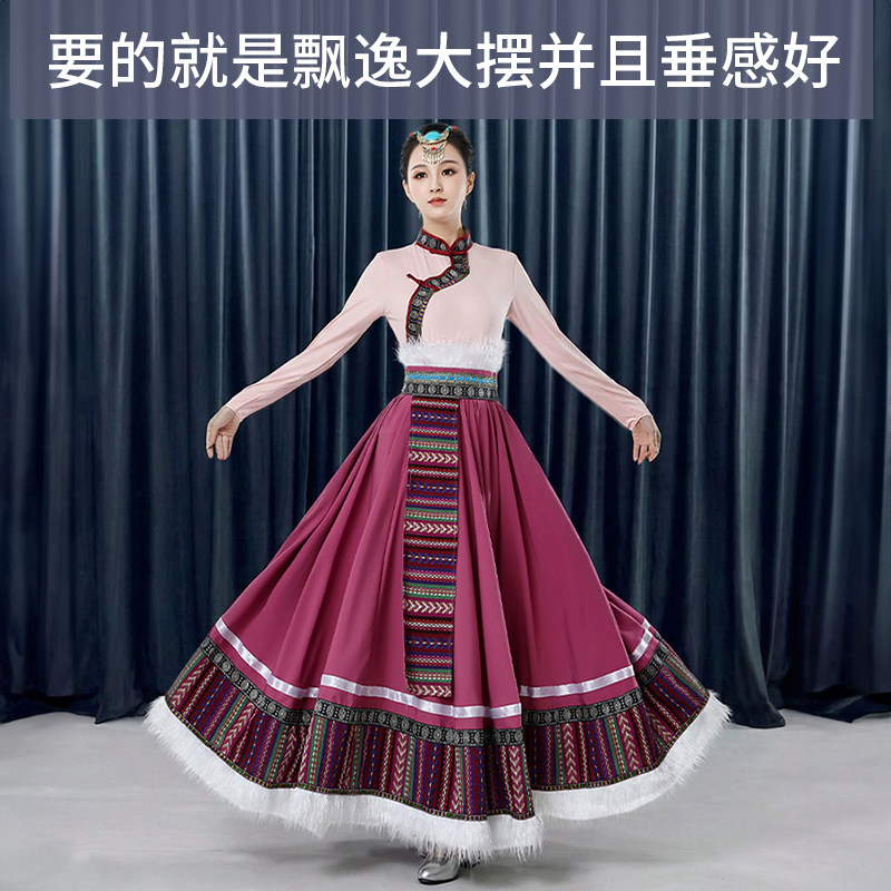 藏族舞蹈演出服装 藏族广场舞蹈比赛 女艺考练习服饰民族大摆裙长款