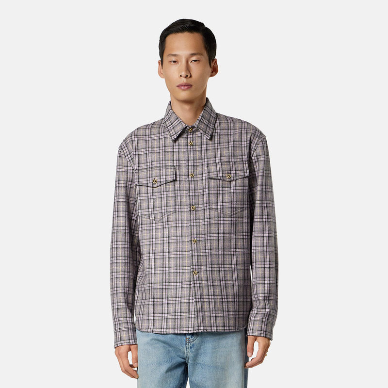 男士 范思哲 VERSACE 格纹羊毛法兰绒衬衫 新品