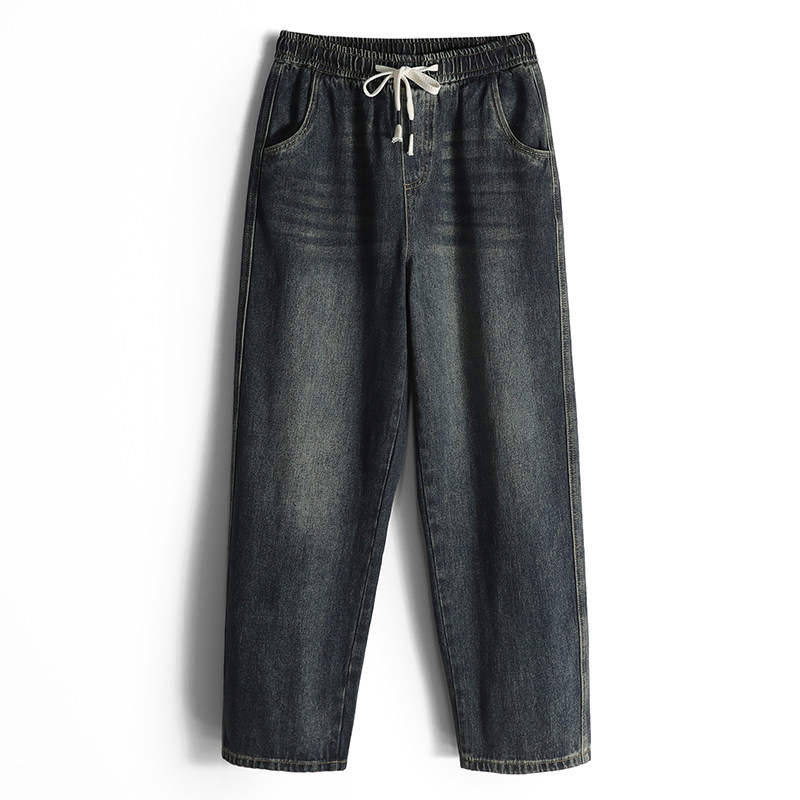 显瘦直腿神裤 MLPSTUDIO 复古水洗蓝加绒直筒拖地牛仔裤