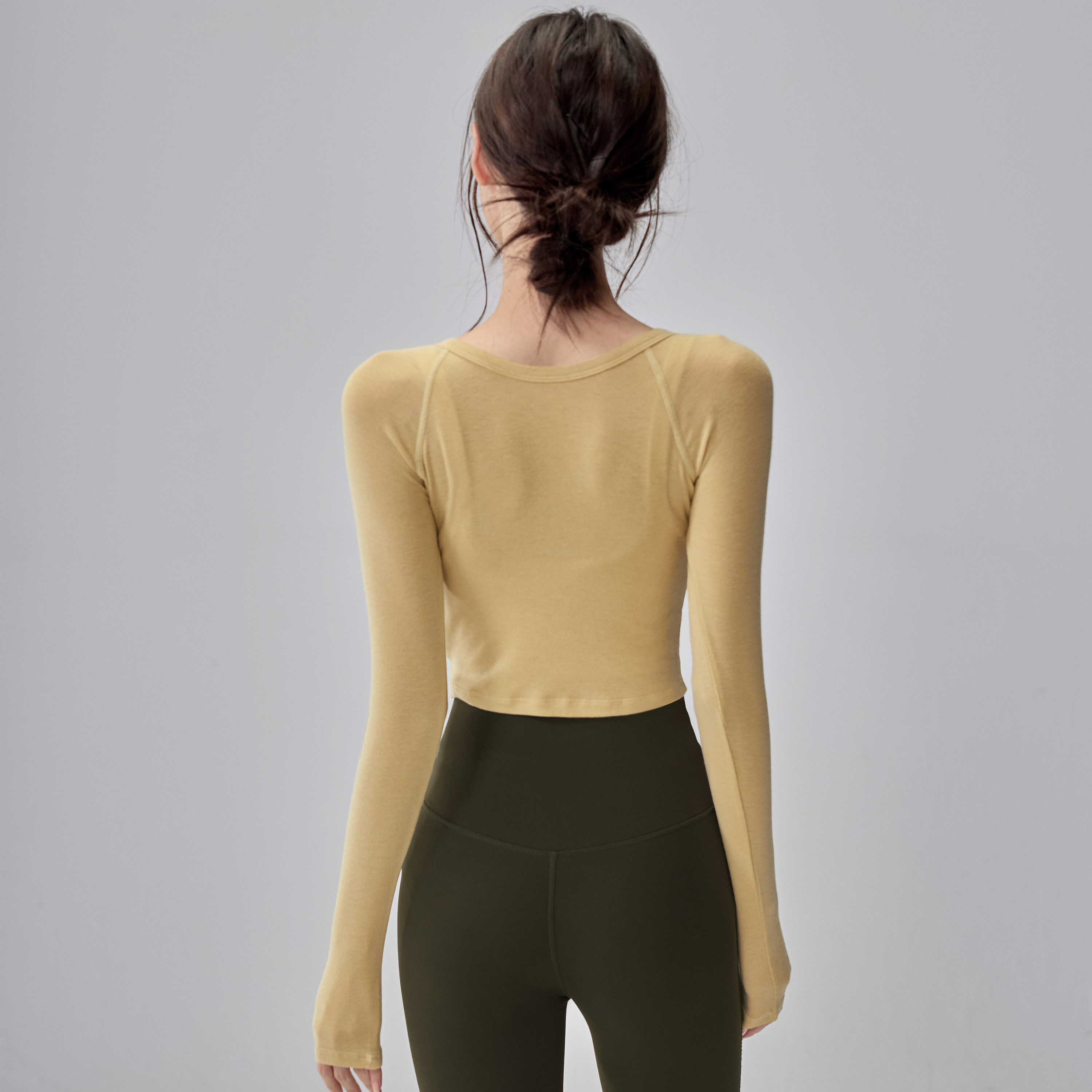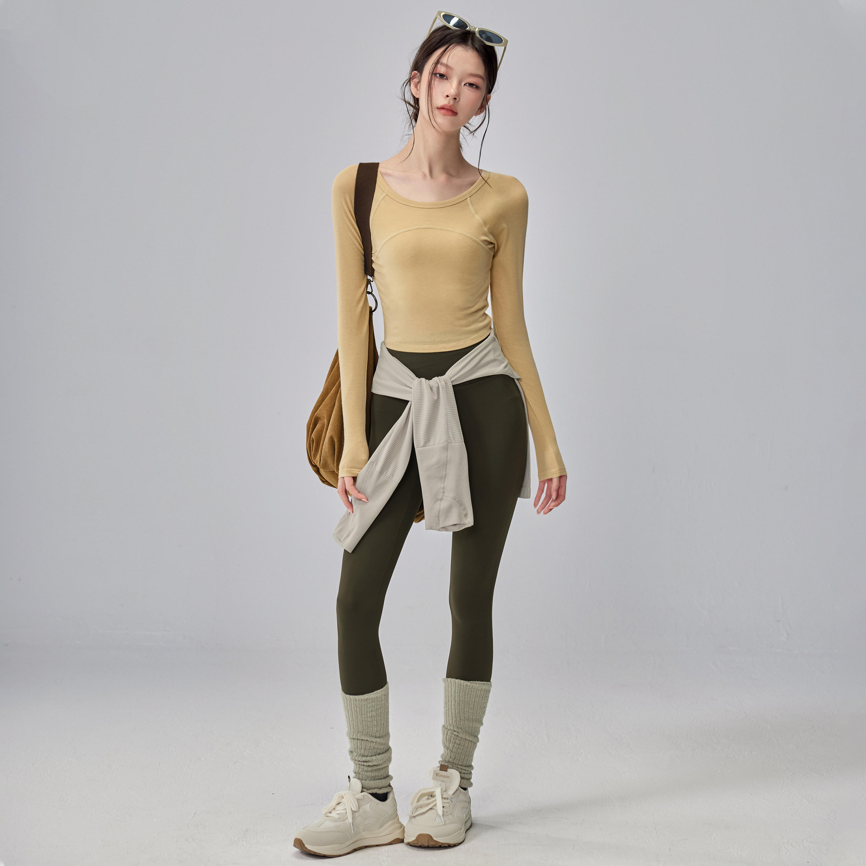 瑜伽服长袖 女羊毛紧身运动上衣弹力显瘦秋冬普拉提训练健身T恤新