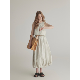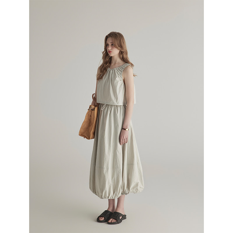 半身裙套装 三十三 背心上衣女松紧腰中长款 圆领无袖 户外plan