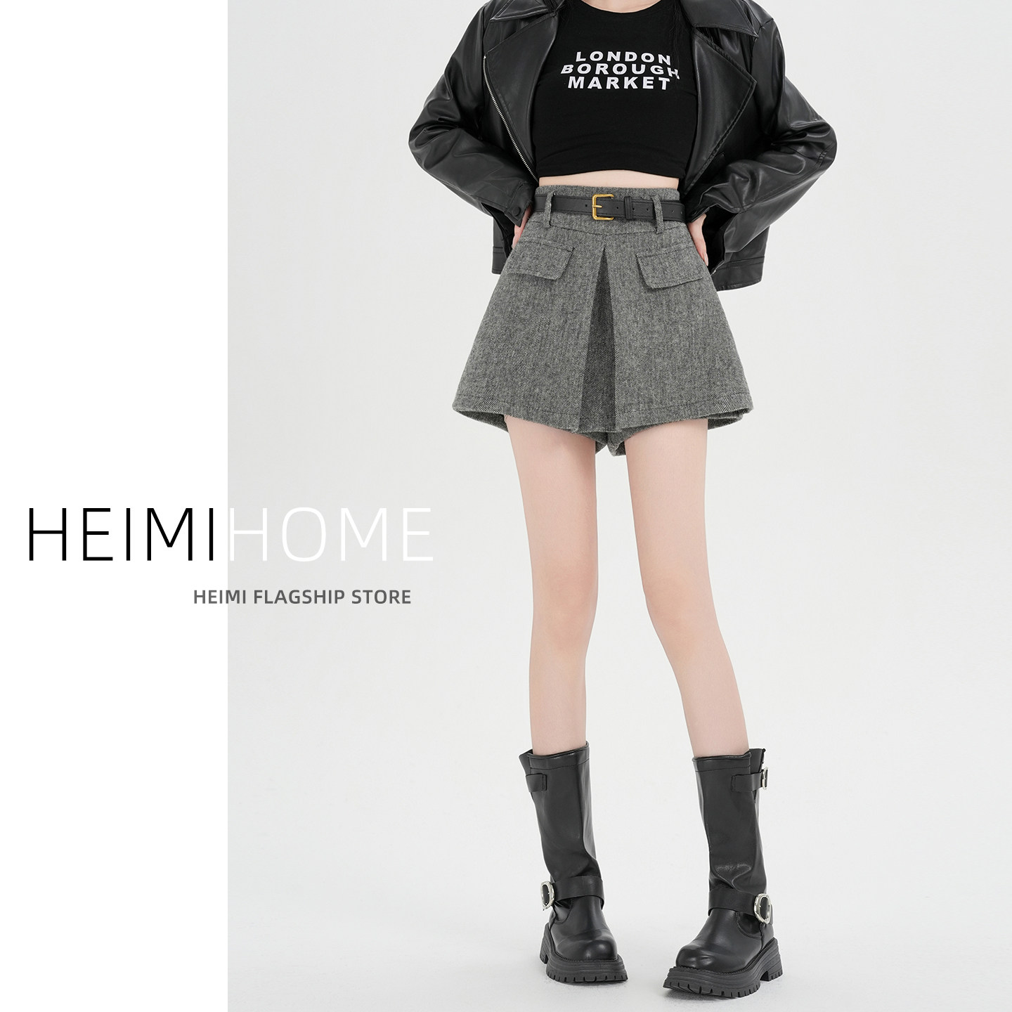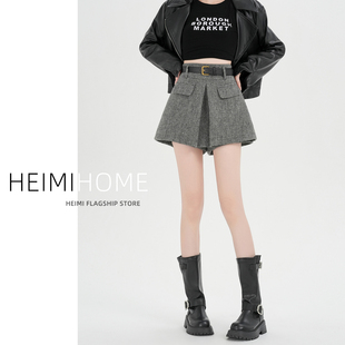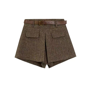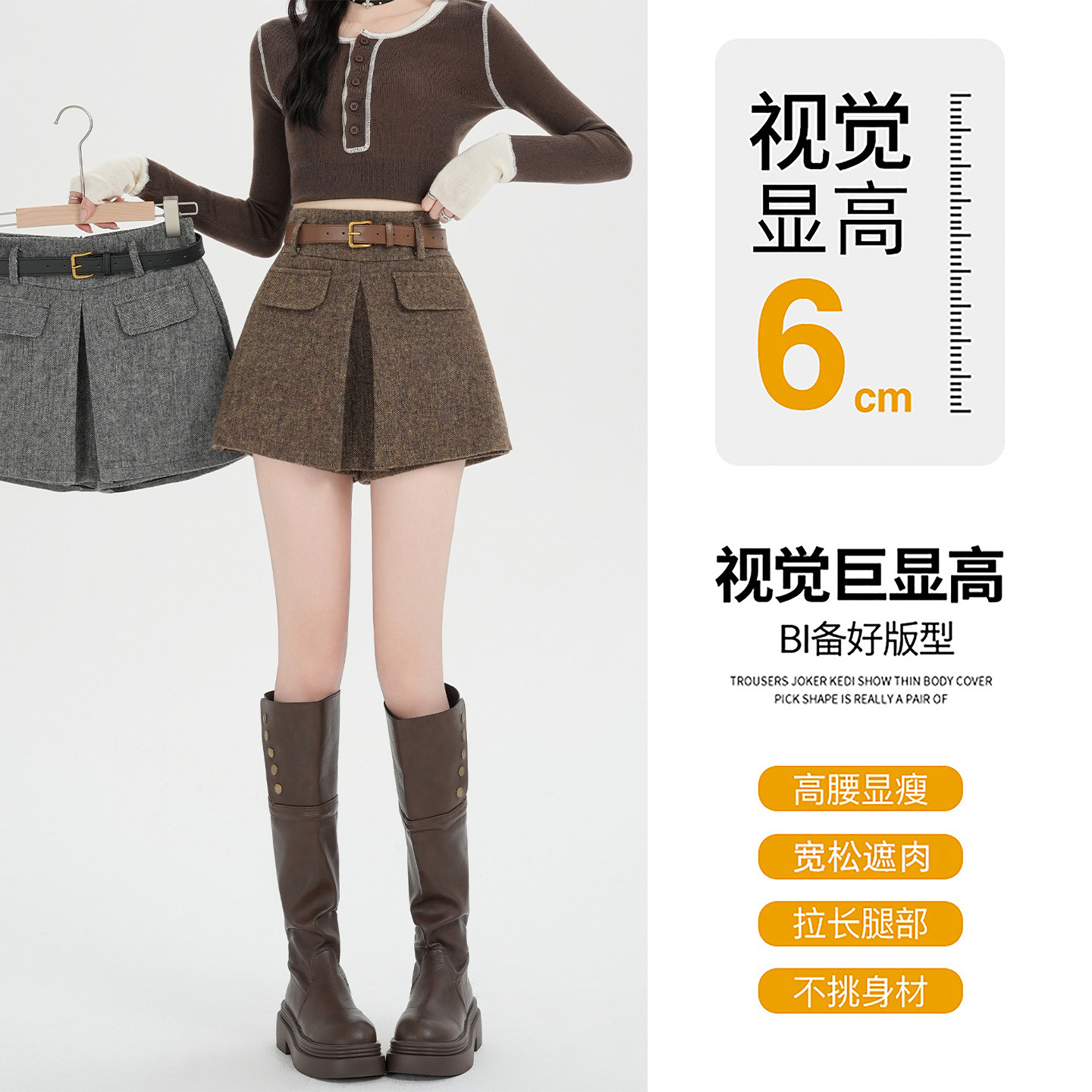 小个子呢子半身裙 气质A字休闲裙裤 咖色复古开叉毛呢靴裤 女秋冬季