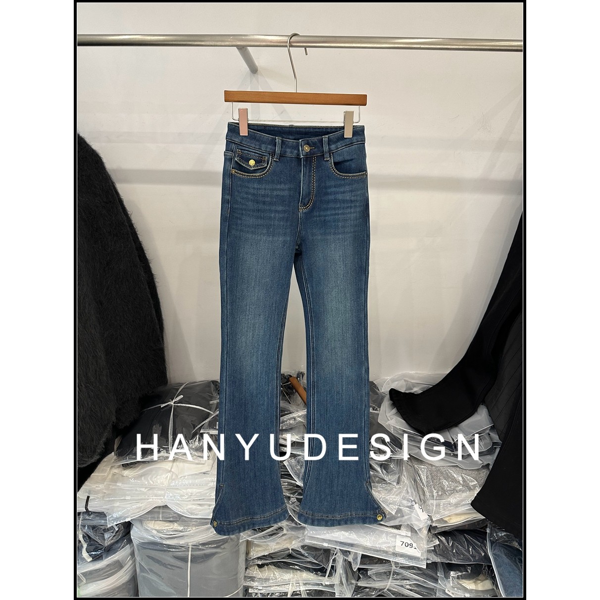 微喇牛仔裤 脚显瘦修身 洋气拼接裤 女 韩钰DESIGN