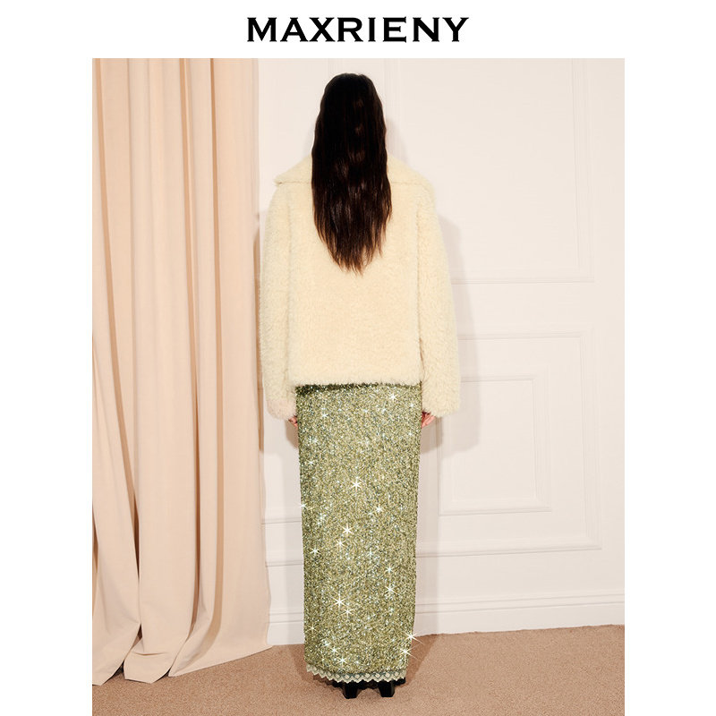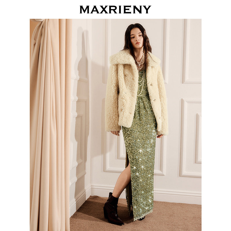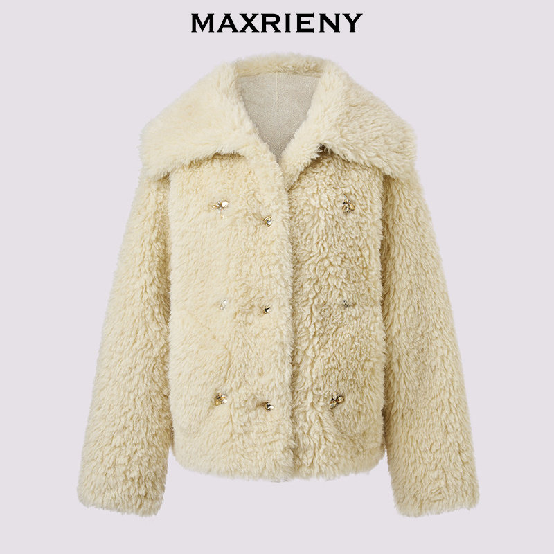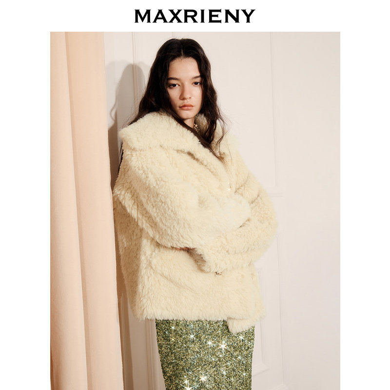 MAXRIENY松绒系穿搭翻领廓形仿羊羔毛外套环保皮草 商场同款