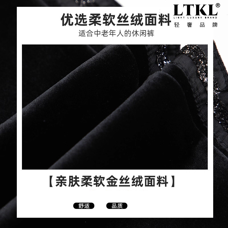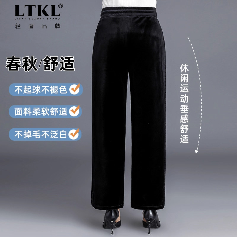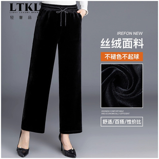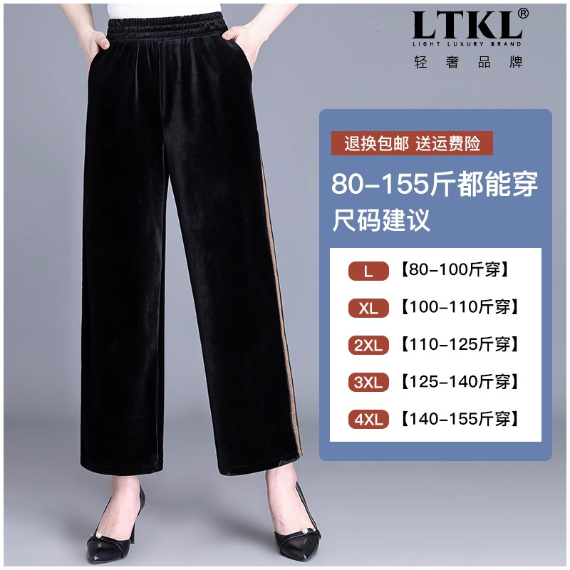 中年女士大脚休闲加绒保暖阔腿裤 中老年女裤 子秋冬季 金丝绒妈妈裤