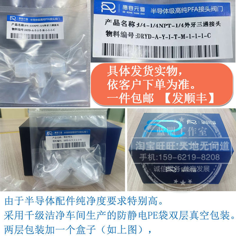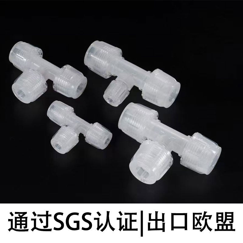 德容元 特氟龙半导体快插 道进口超高纯PFA接头变径异径三通入珠式