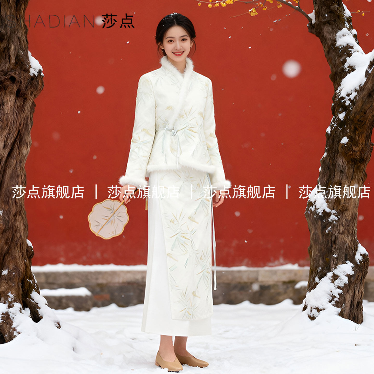 气质裙子套装 2025新款 高级感 国风半身裙长裙两件套裙装 白色新中式