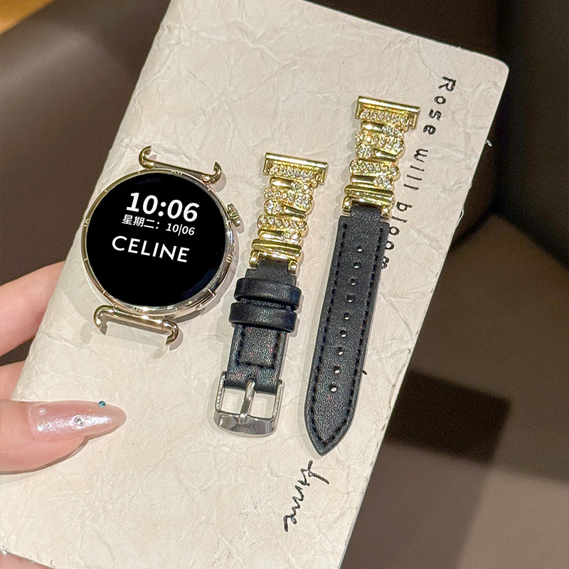 watchgt5高级gt5pro官方正品 适用华为GT6表带GT5手表金属镶钻拼皮腕带新款 gt4女士41闪钻轻奢 不规则镶钻