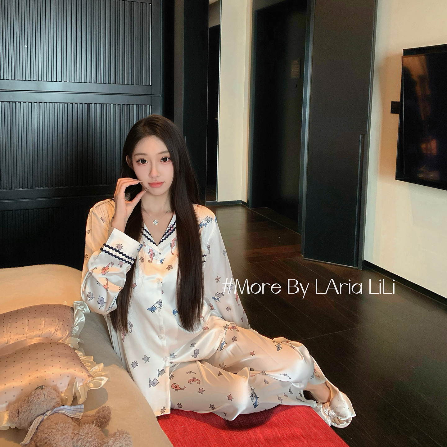 秋季 2025新款 家居服纯欲风 冰丝睡衣女性感春秋款 LAria海甜水手记