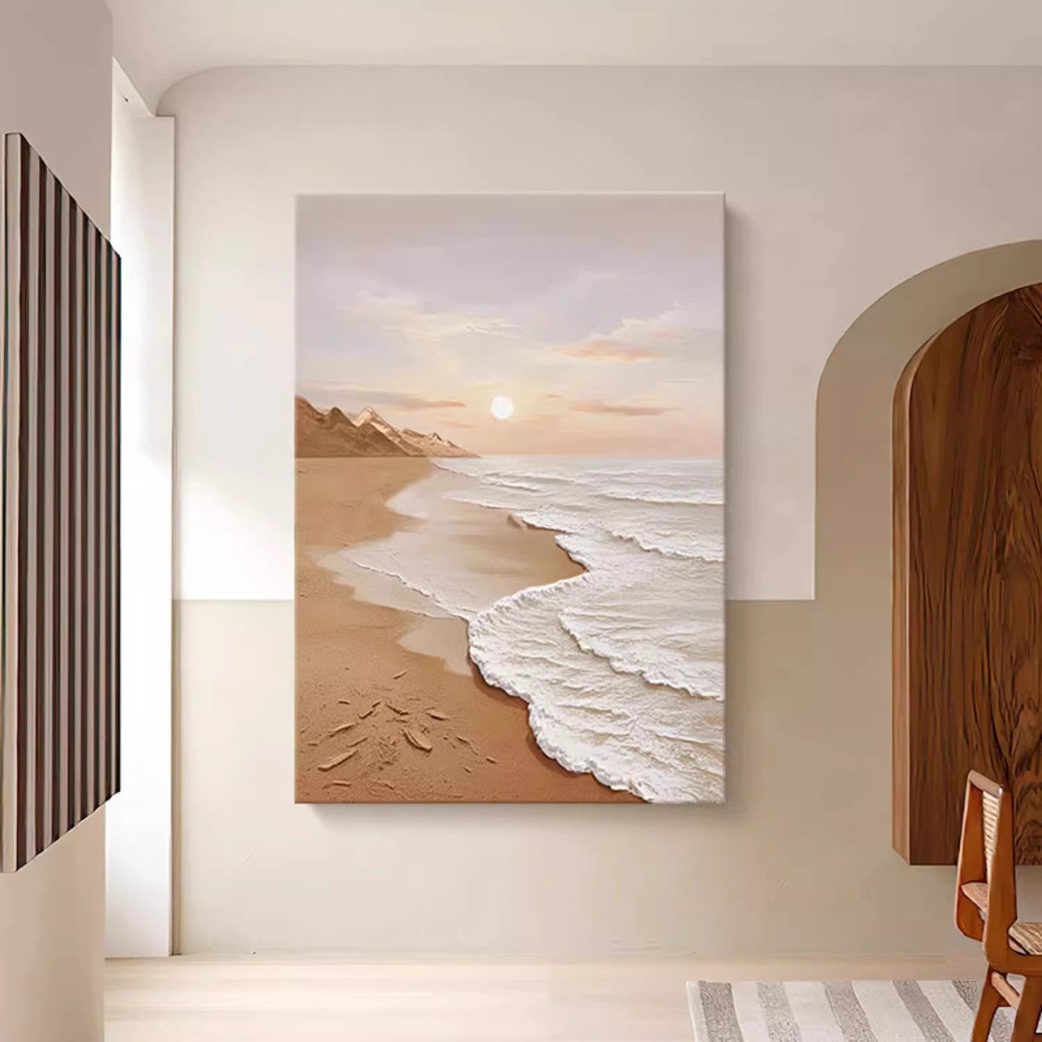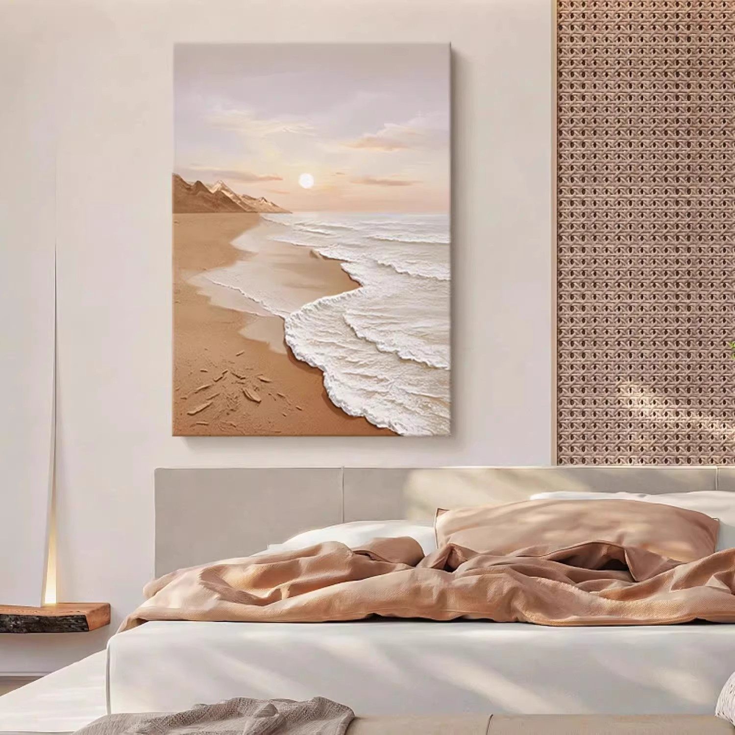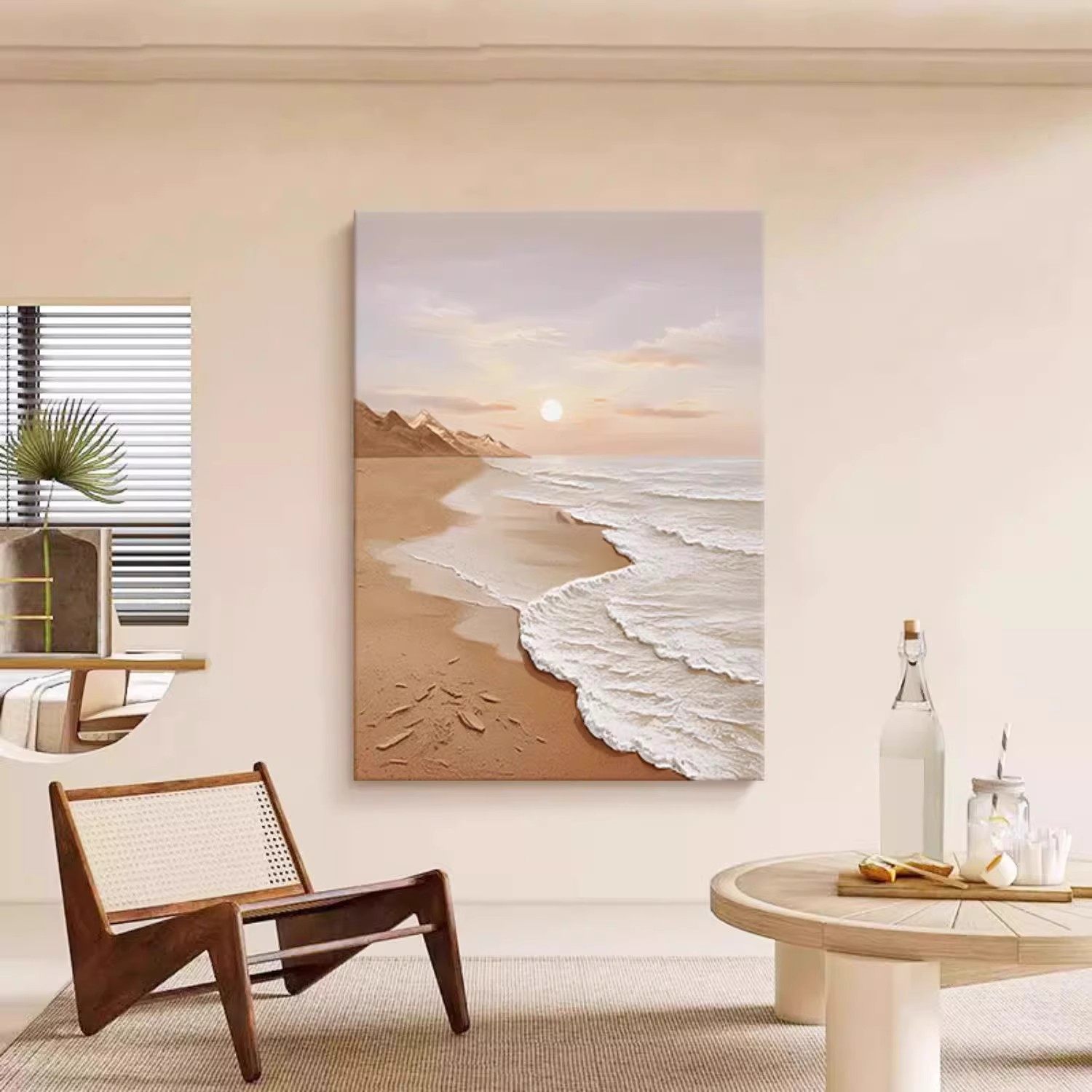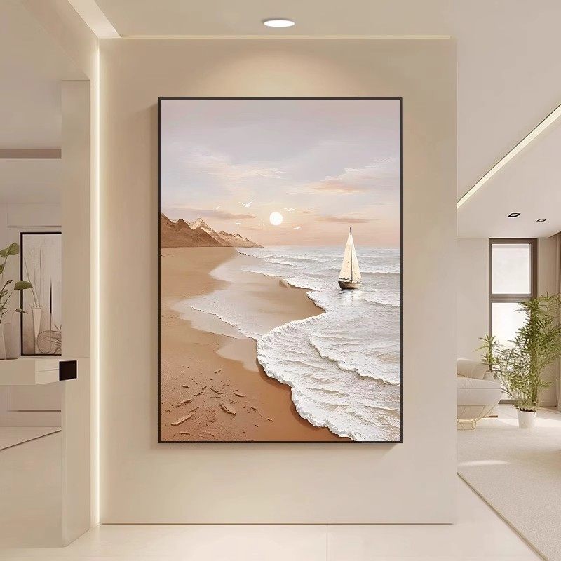 奶油风大海滩装 饰画成品仿油画风景唯美简约高级感卧室客厅摆挂画