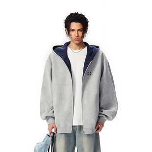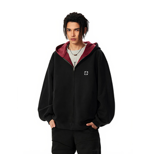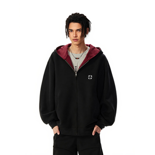 INKNOTS简约高级感廓形空气层连帽卫衣男女潮牌boxy短宽拉链外套