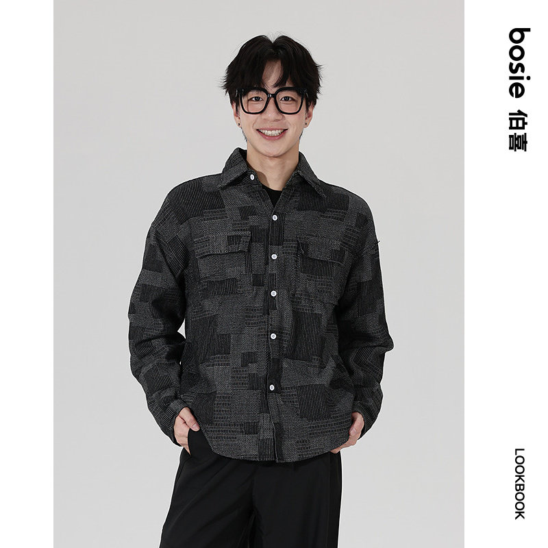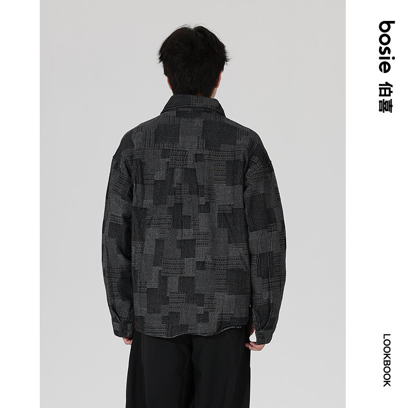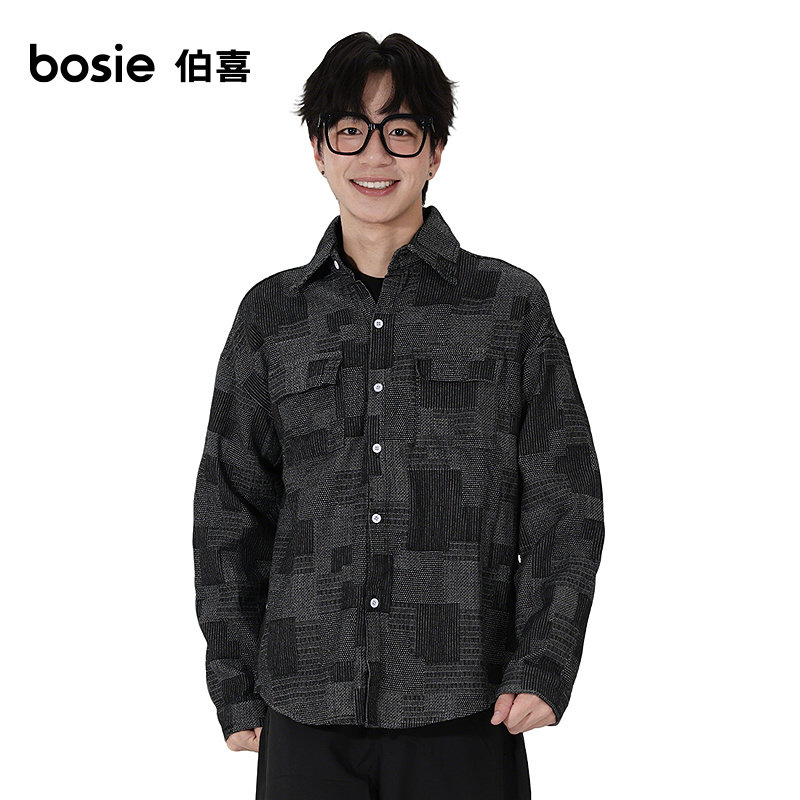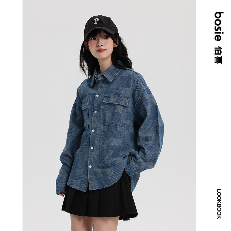 牛仔衬衫 日系复古不规则格子情侣男女工装 外套 新款 bosie2025秋季