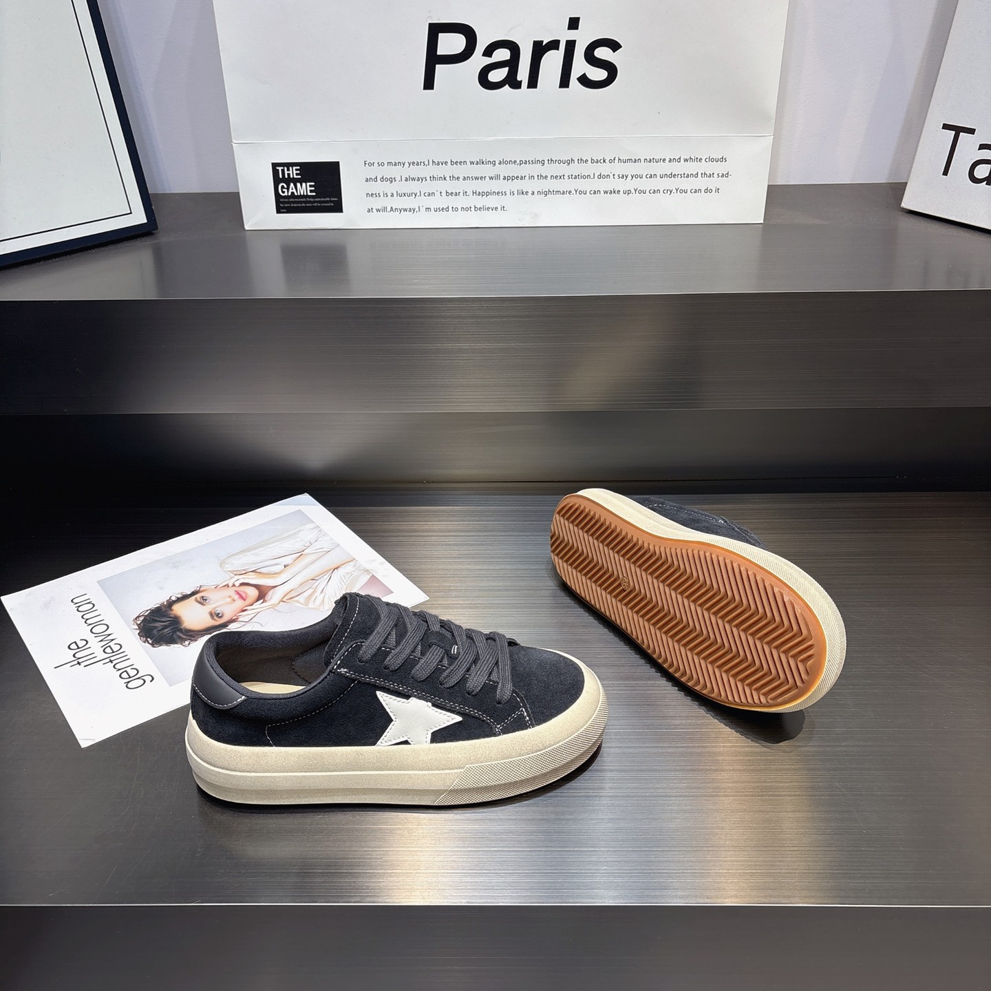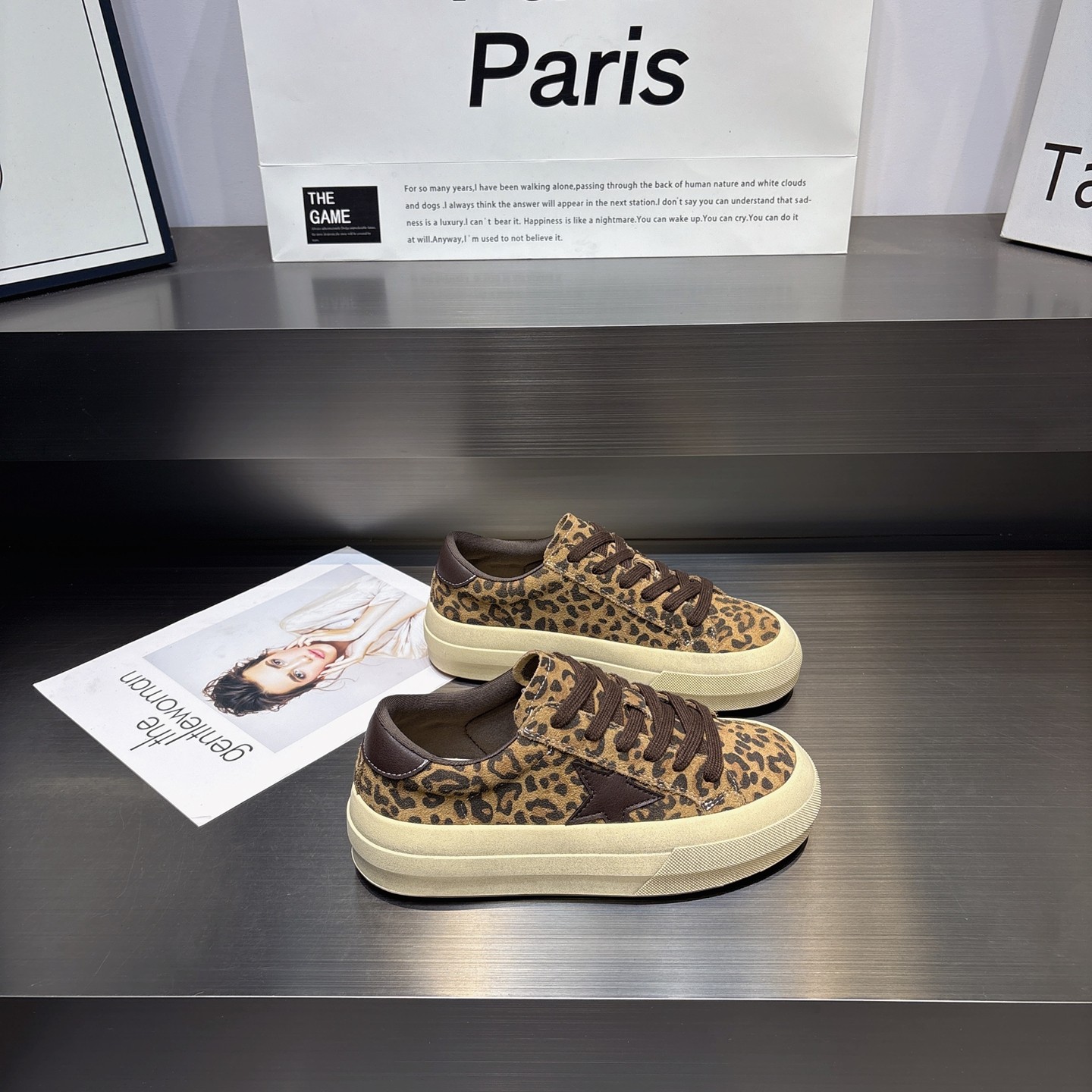 百搭厚底系带休闲板鞋 豹纹色真皮厚底星星鞋 韩版 新款 女 女2025秋季