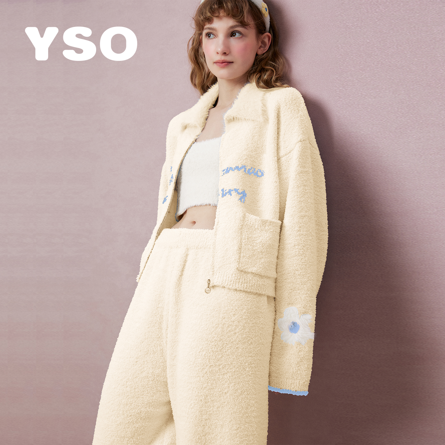 半边绒刺绣ins可外穿家居服套装 yso 新款 睡衣女冬季 花花梦园