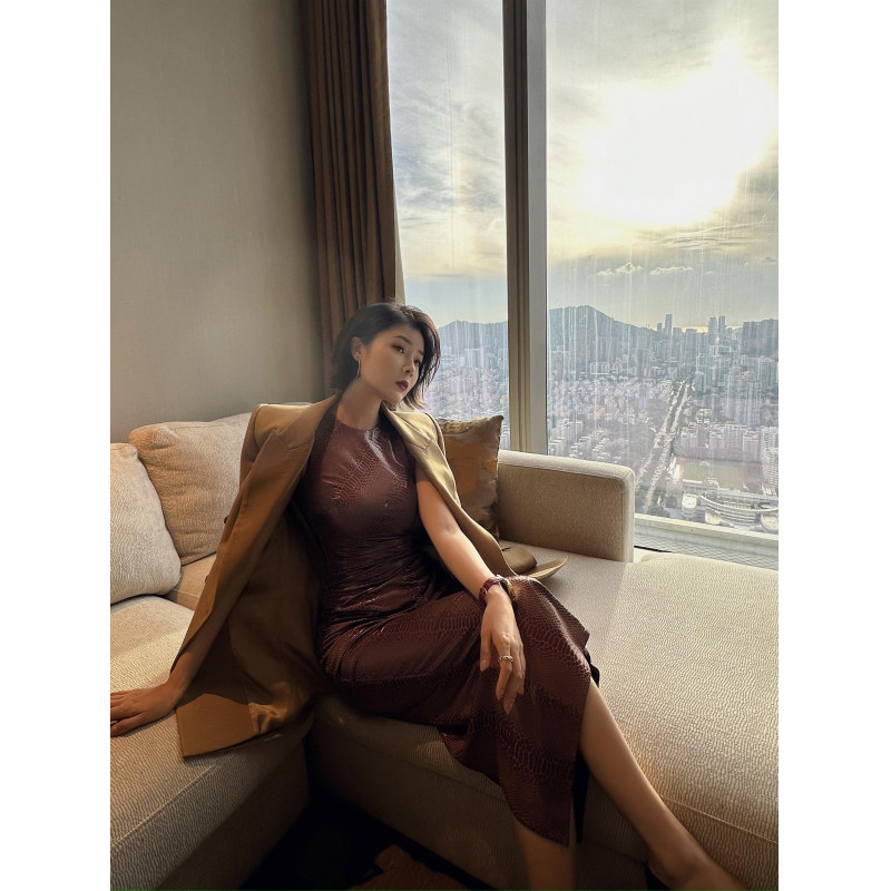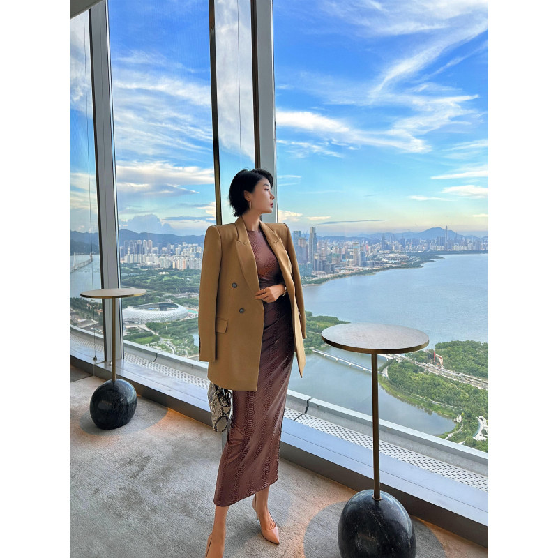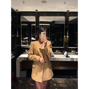 长袖 通勤轻奢修身 直角肩外套 高定气质卡其色西装 XULU原创秋冬新款