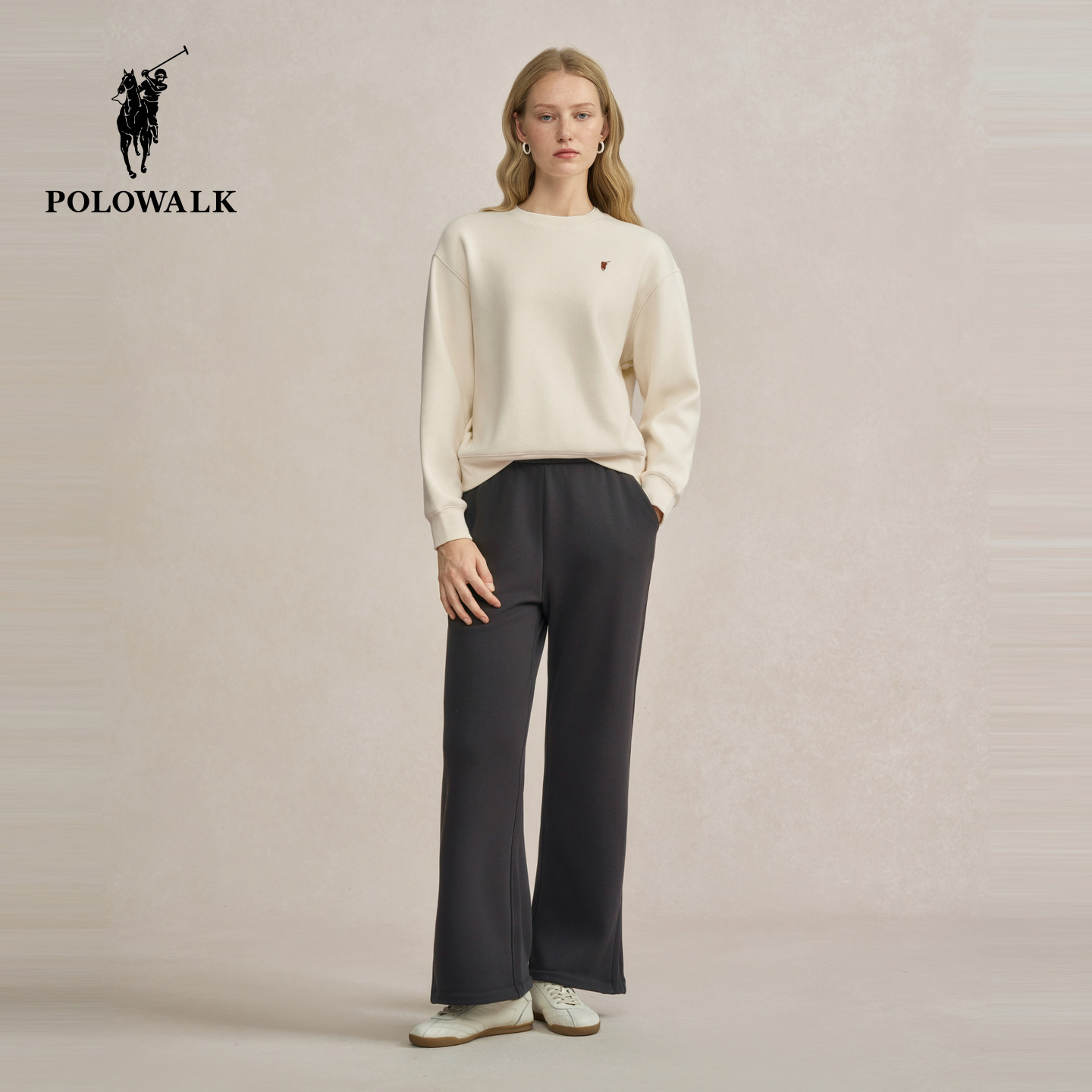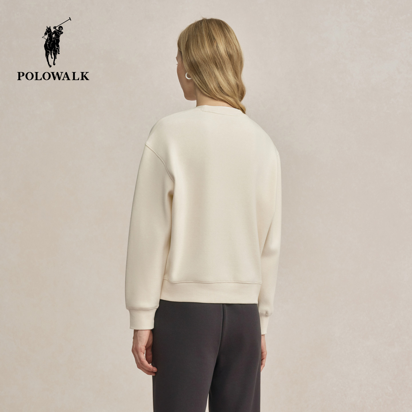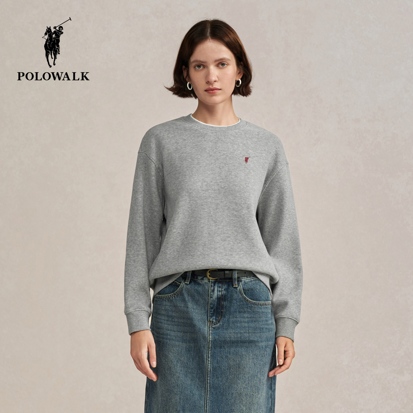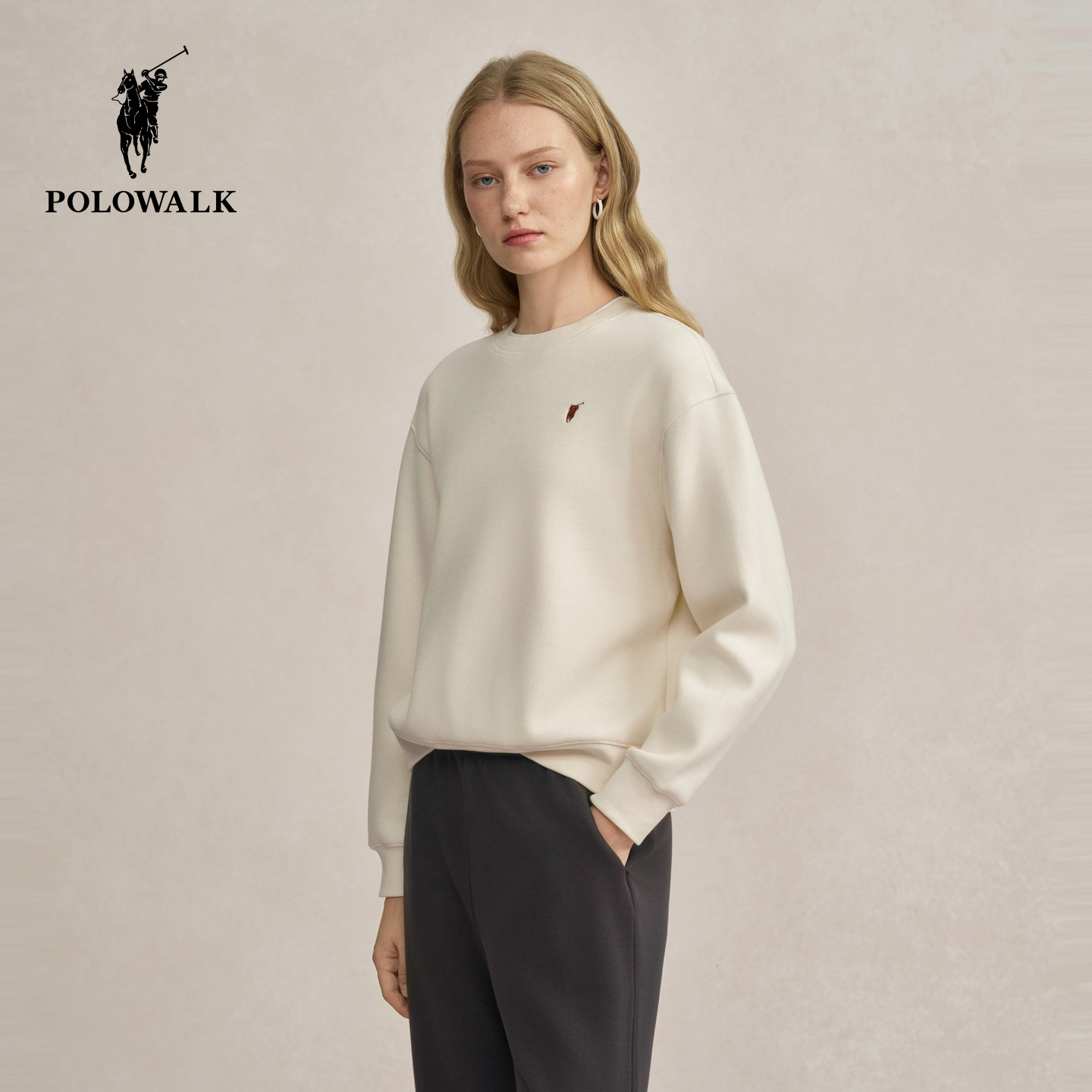 纯色百搭显瘦圆领加绒套头打底衫 新品 女 卫衣2025冬季 POLOWALK女式