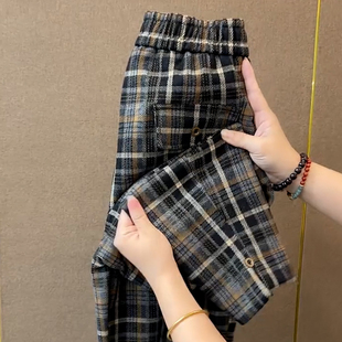 子 秋冬胖妹妹高腰宽松显瘦小个子萝卜休闲裤 加绒九分哈伦裤 女大码