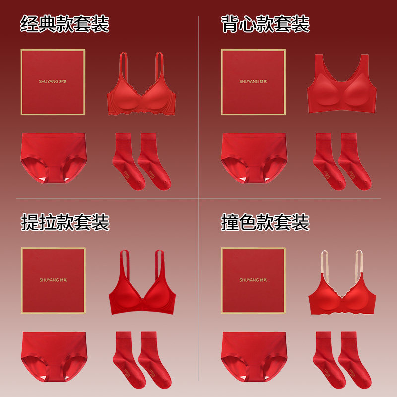 本命年内衣女红色蛇年转运小胸聚拢性感无钢圈结婚新娘文胸罩套装