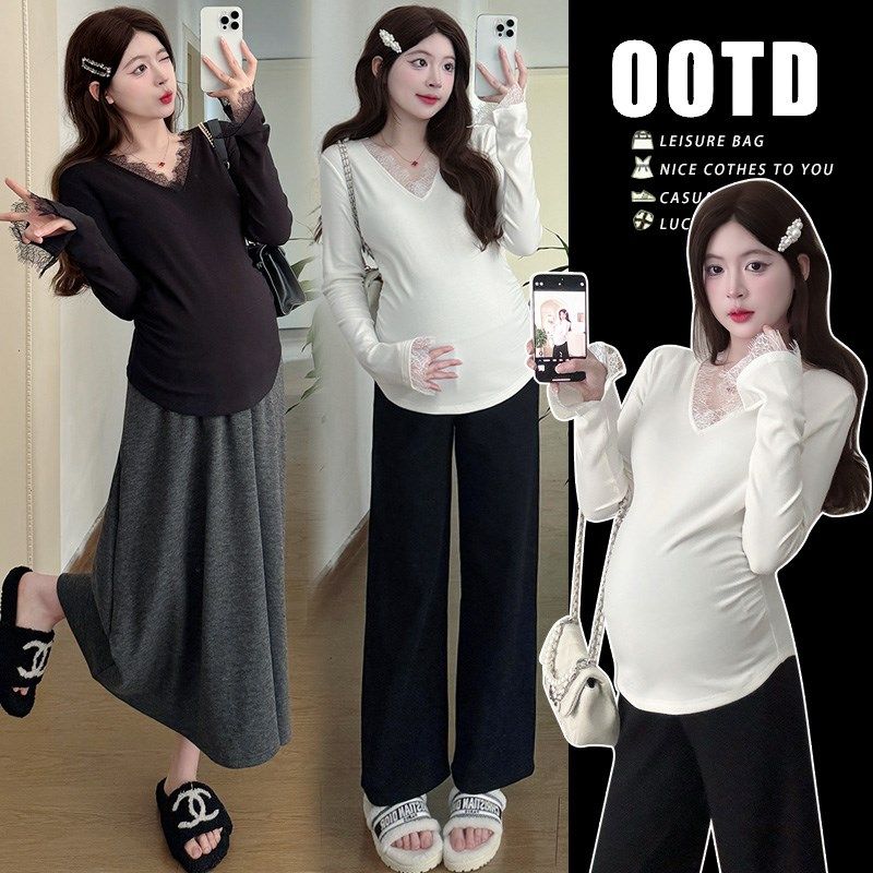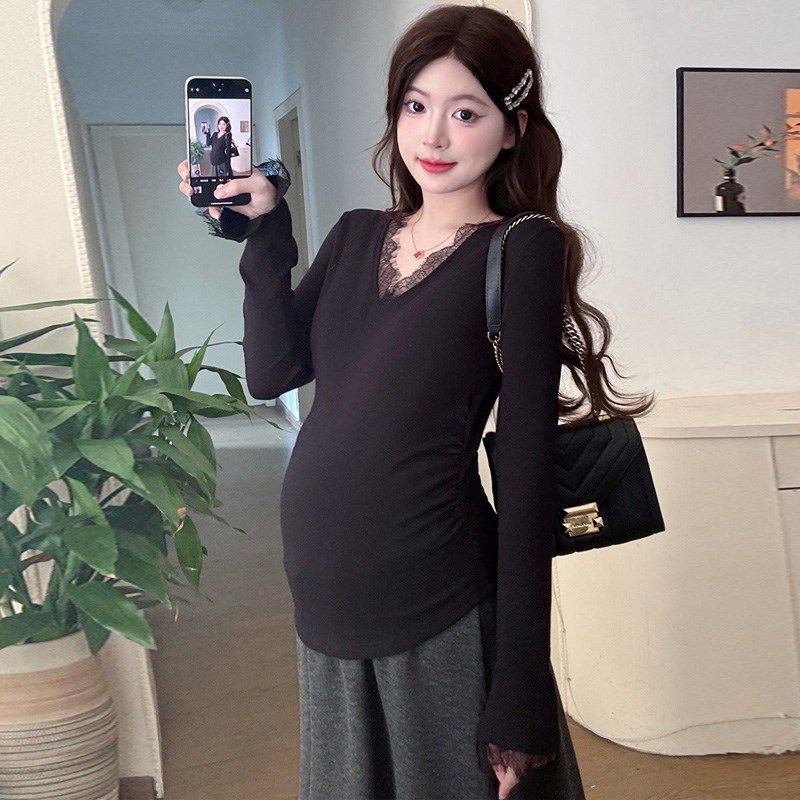 春装 打底衫 拼接蕾丝长袖 百搭休闲怀孕T恤春季 衣服 上衣时尚 孕妇装