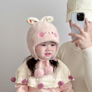 儿童可爱小羊毛绒帽子秋冬季 男女童加厚护耳帽耳朵会动包头帽 新款