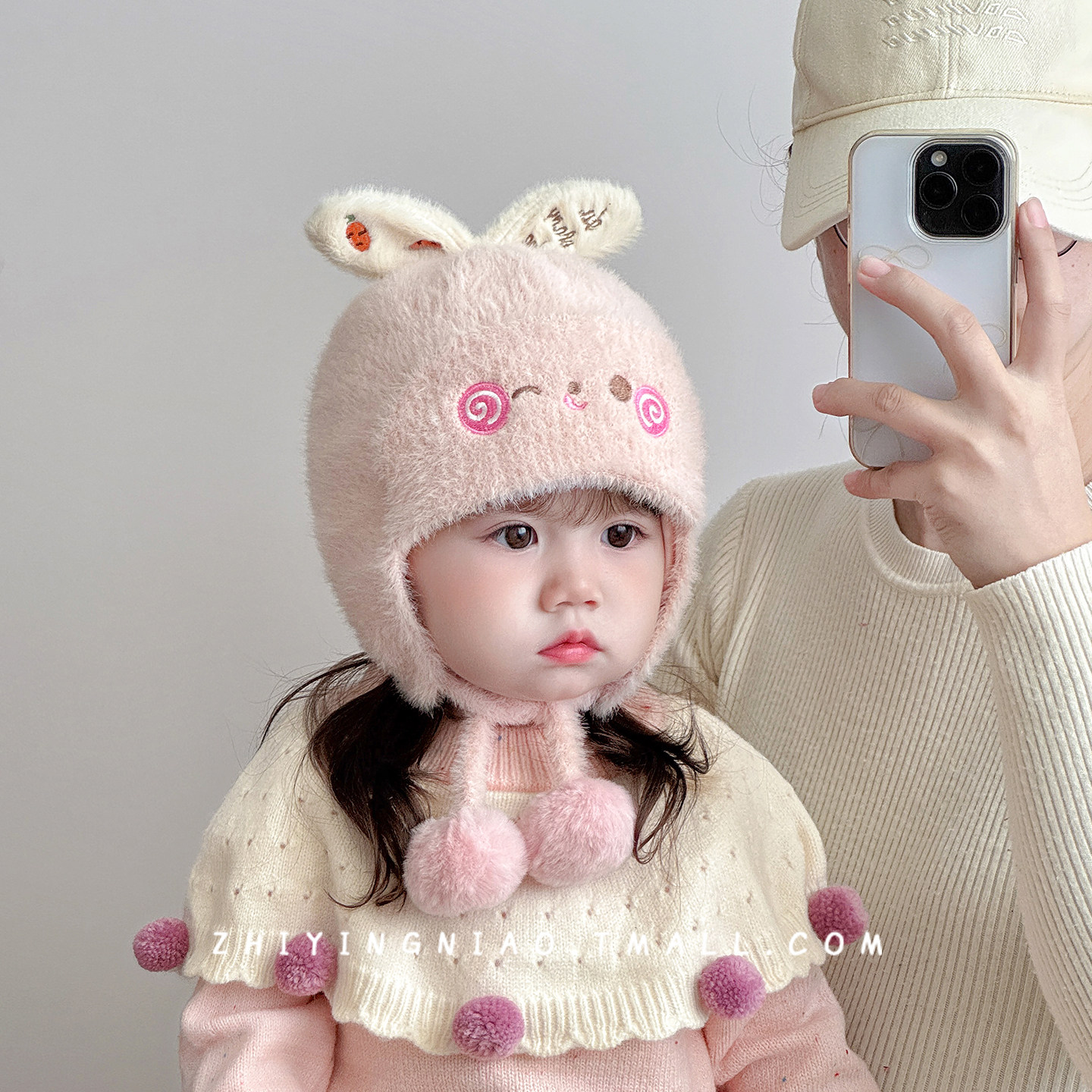 冬天 围脖女男孩捏耳朵会动 儿童帽子围巾一体无牙仔2025新款 冬季