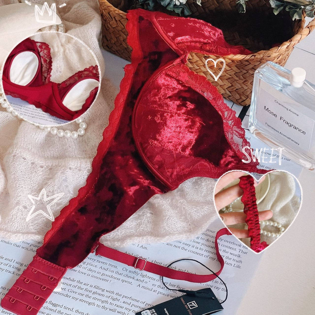 虞书欣同款 小胸无痕送礼婚礼文胸罩女 ubras本命年红色内衣套装