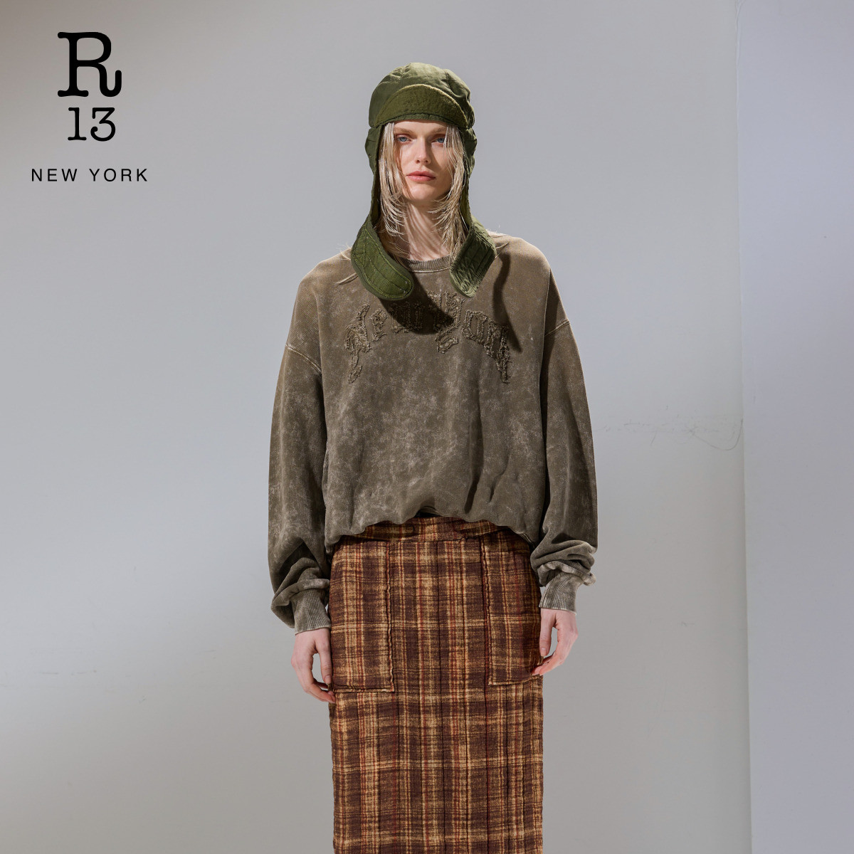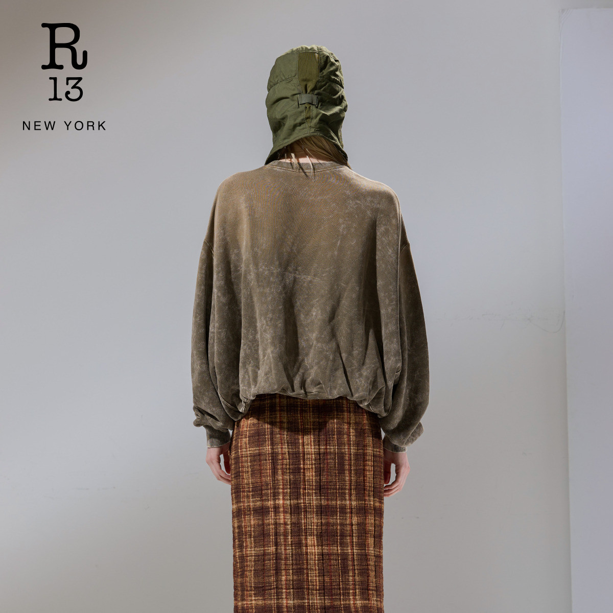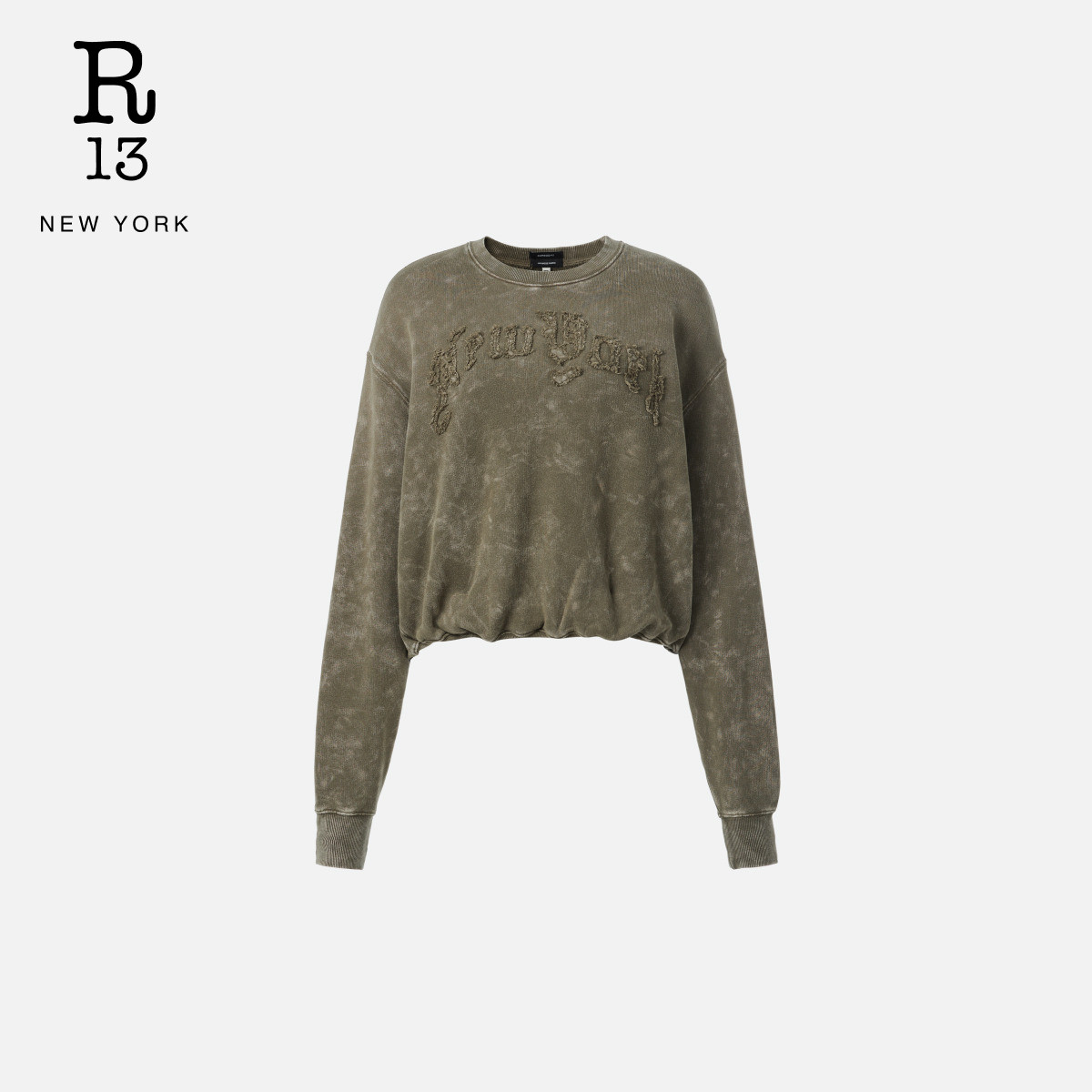 R13 末甄选 宽松休闲下摆收褶泡泡边圆领卫衣 季