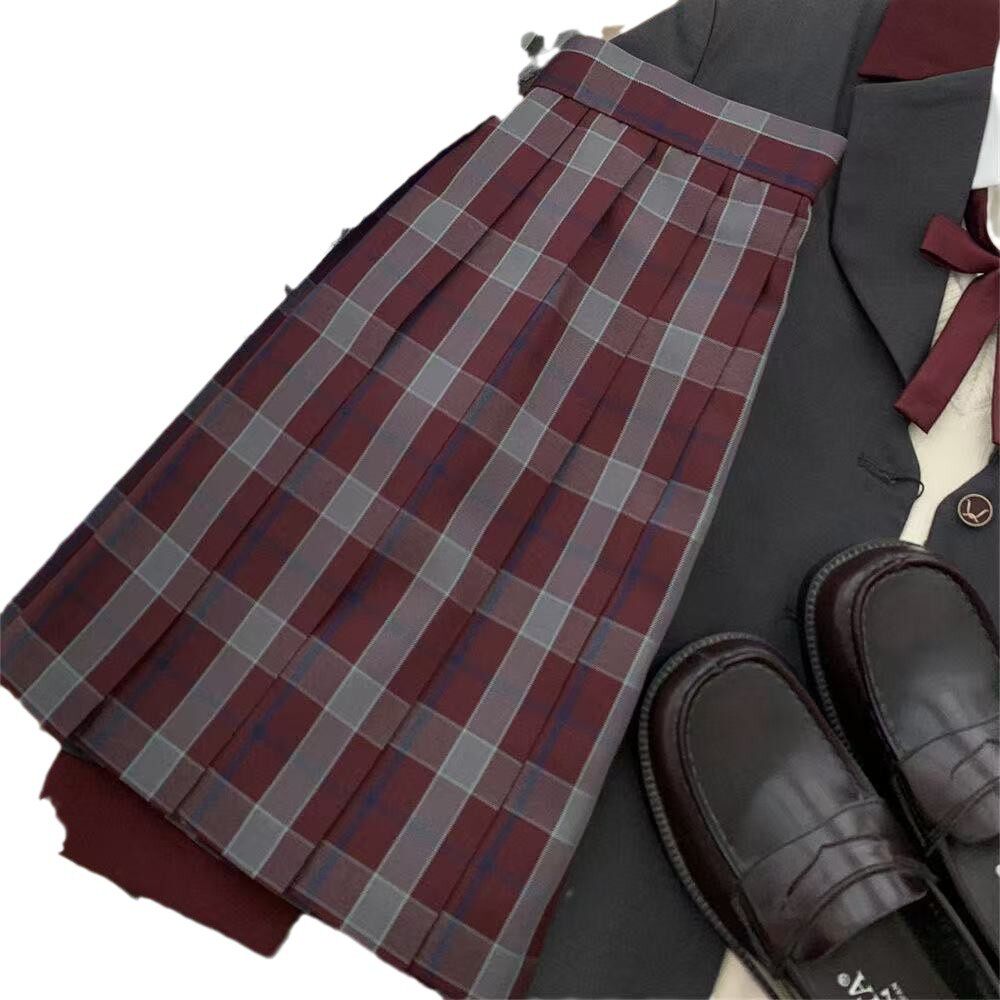 半身裙复古格子服装 JK制服百褶裙高腰修身 新款 半身裙 红豆冰