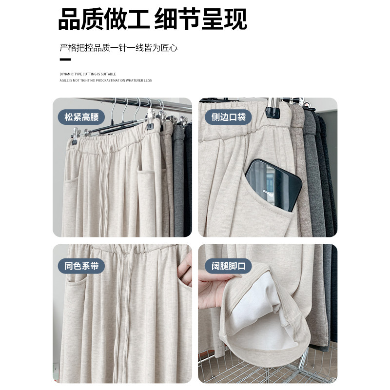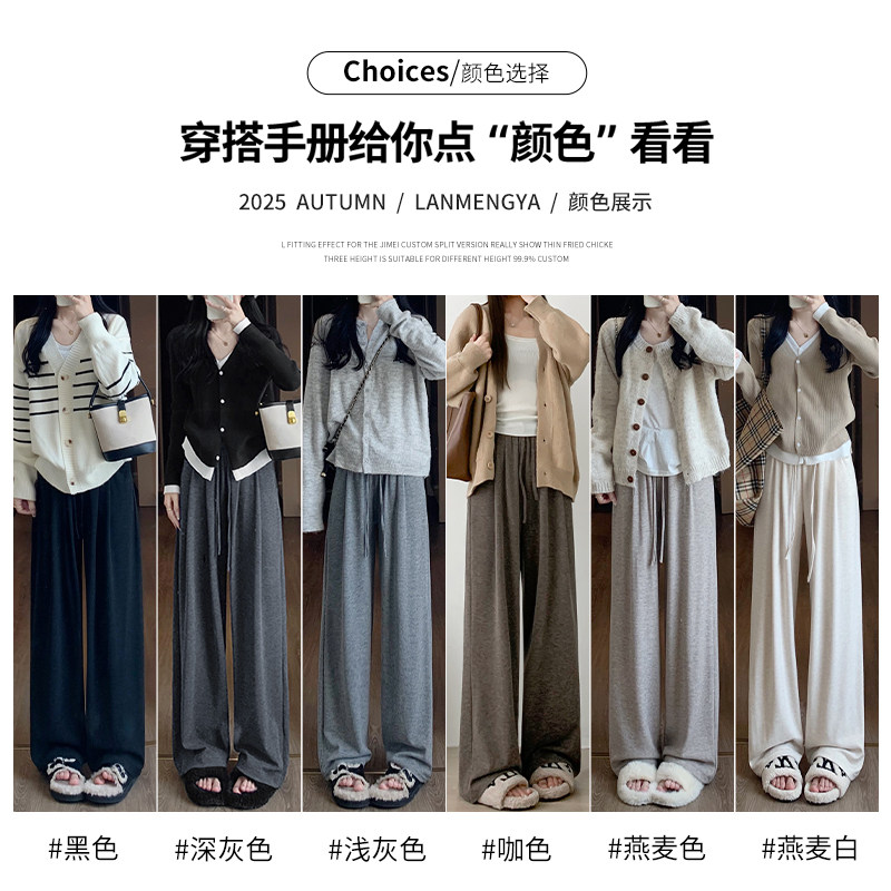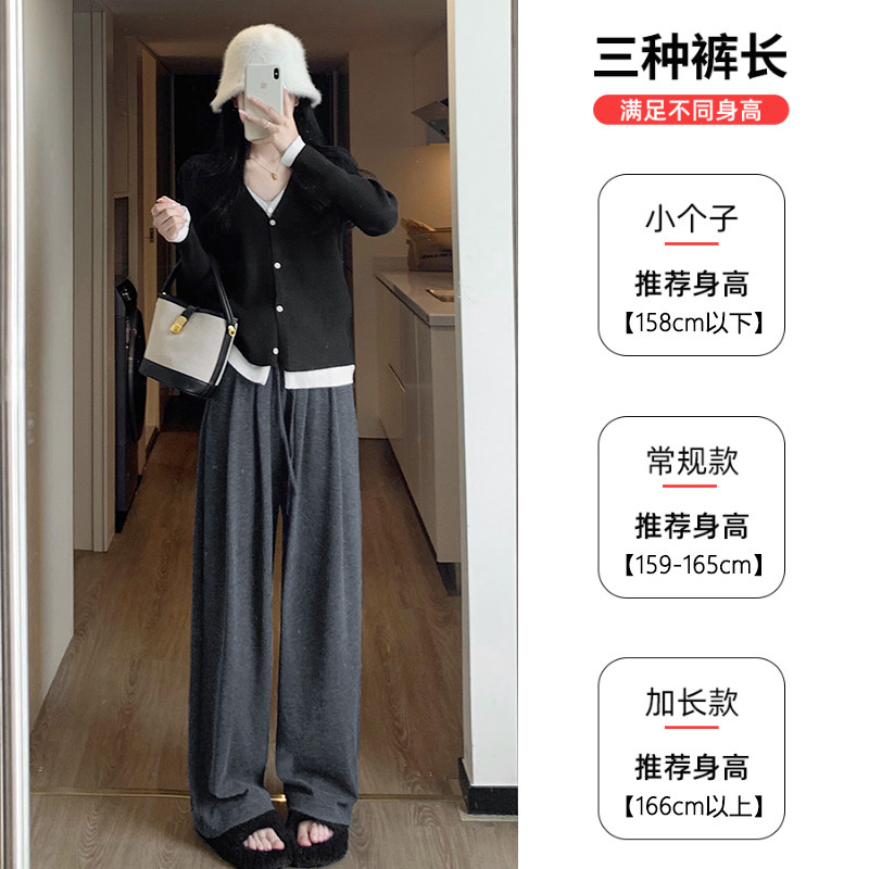高腰直筒休闲慵懒小个子垂感阔腿裤 2025新款 子 女秋季 深灰色糯米裤