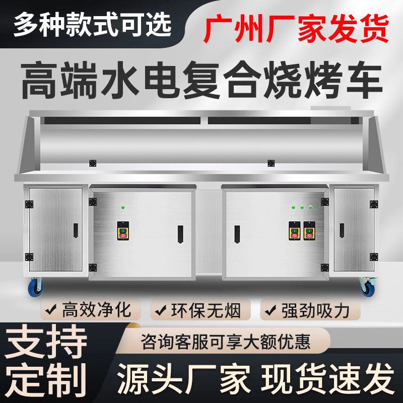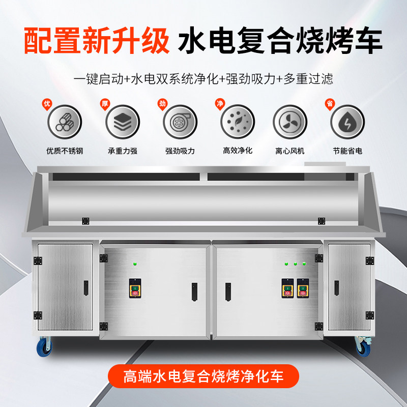 高端平吸款 水电复合无烟烧烤车免清洗环保商用烧烤炉移动夜市摆摊