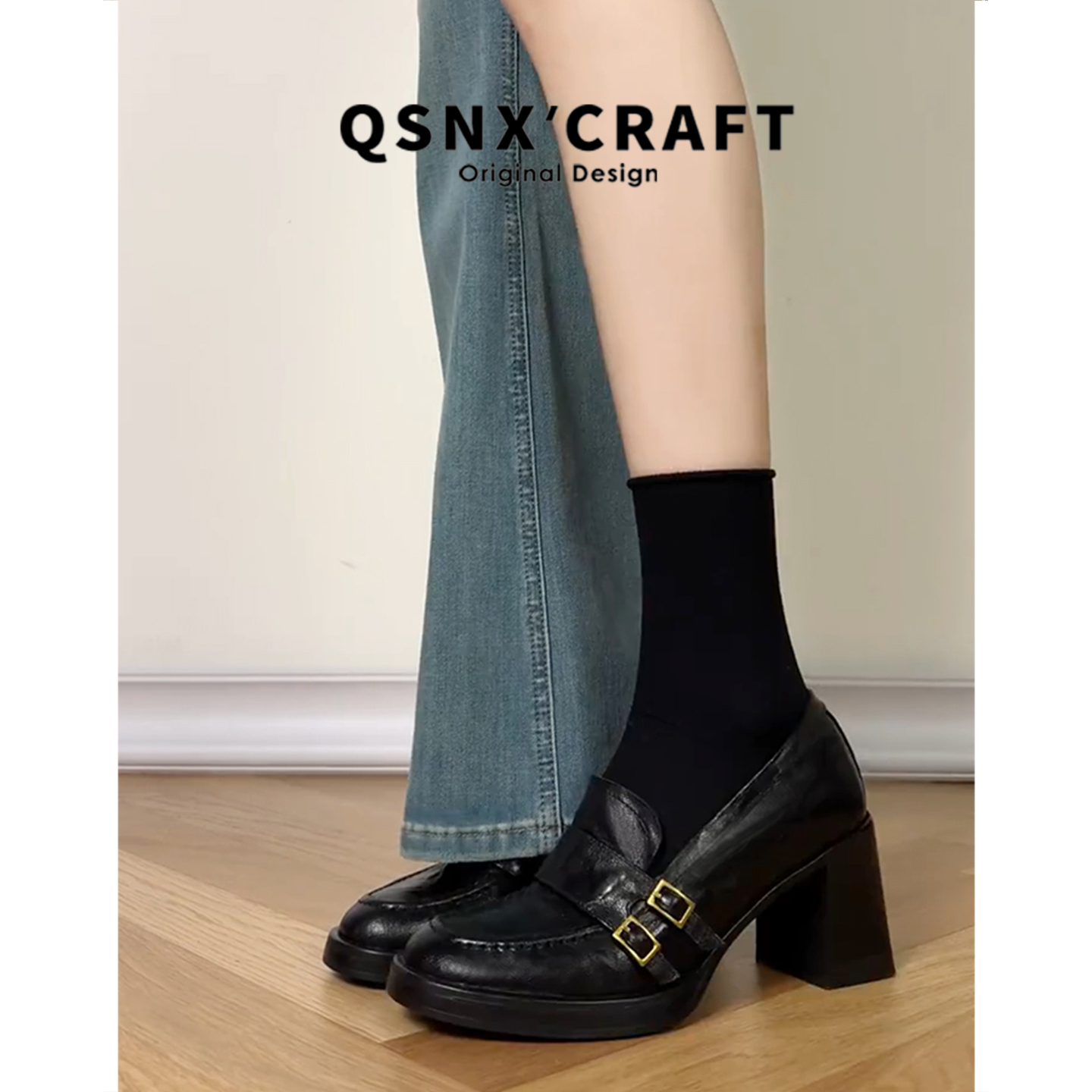 英伦风小皮鞋 羊皮版 黑色通勤高跟单鞋 女2025新款 厚底增高乐福鞋