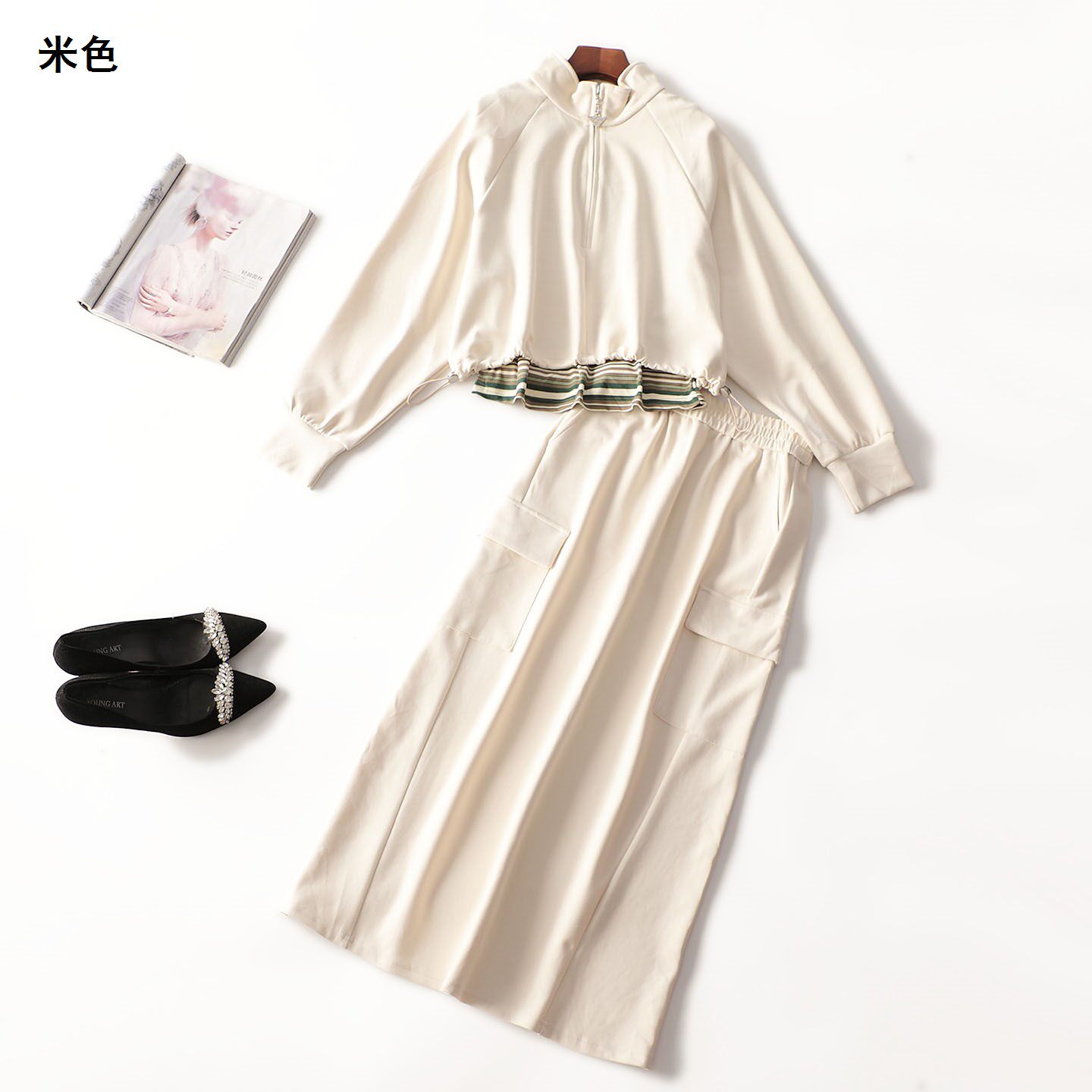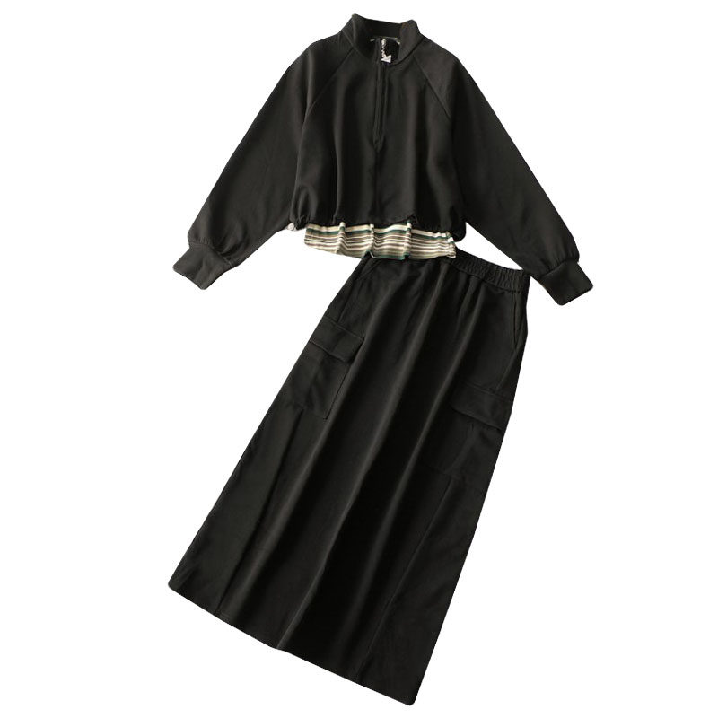 长袖 女中长款 拉链现货 秋外套半身裙套装 412239