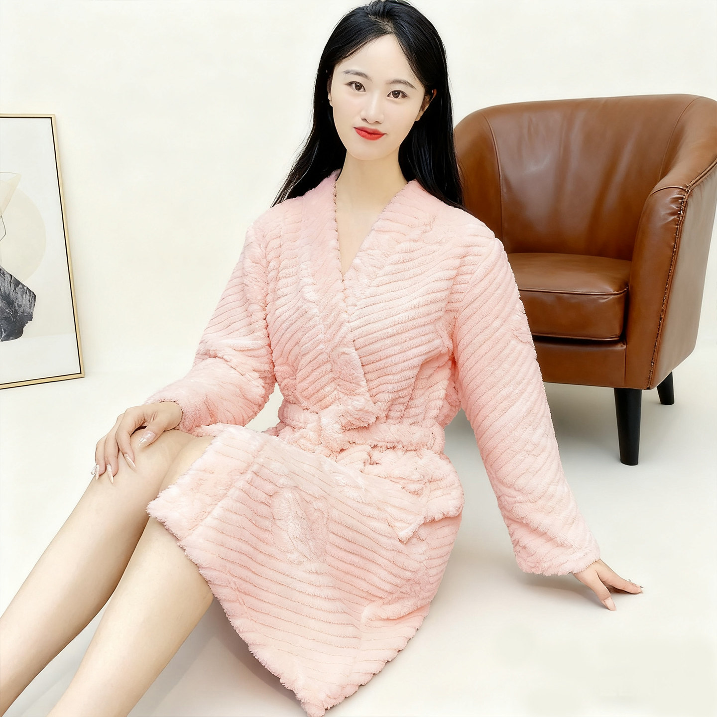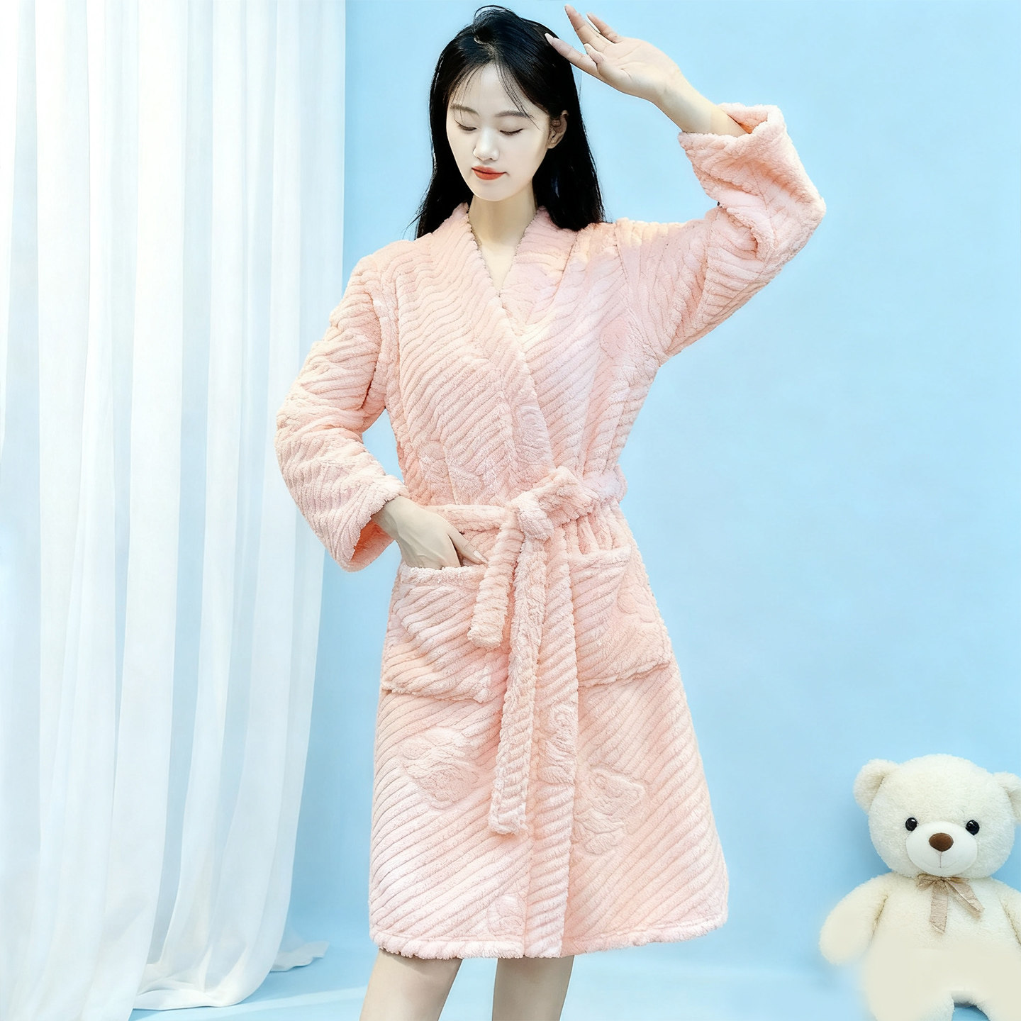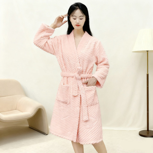 情侣款 浴袍家居服 睡袍睡衣女秋冬加绒加厚珊瑚绒晨袍高级中长款