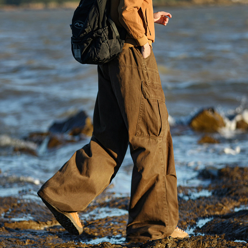 直筒仿灯芯绒美拉德裤 休闲雪尼尔垂感聪明长裤 子男秋 美式 马登工装
