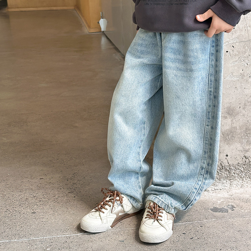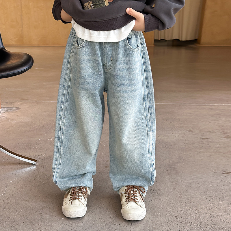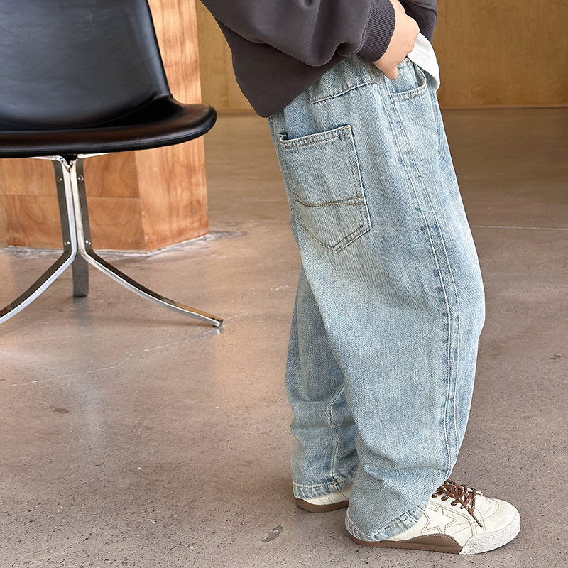 子 宝宝宽松直筒潮童休闲裤 依依妈男童复古砂洗弯刀牛仔裤 儿童秋装