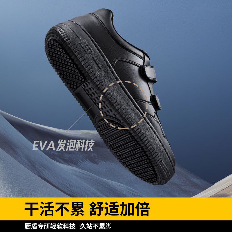 男鞋 鞋 防滑耐磨厨房工作鞋 魔术贴皮面男式 透气休M闲鞋 厨师防滑鞋