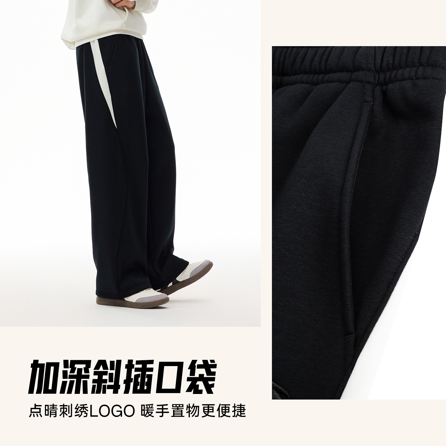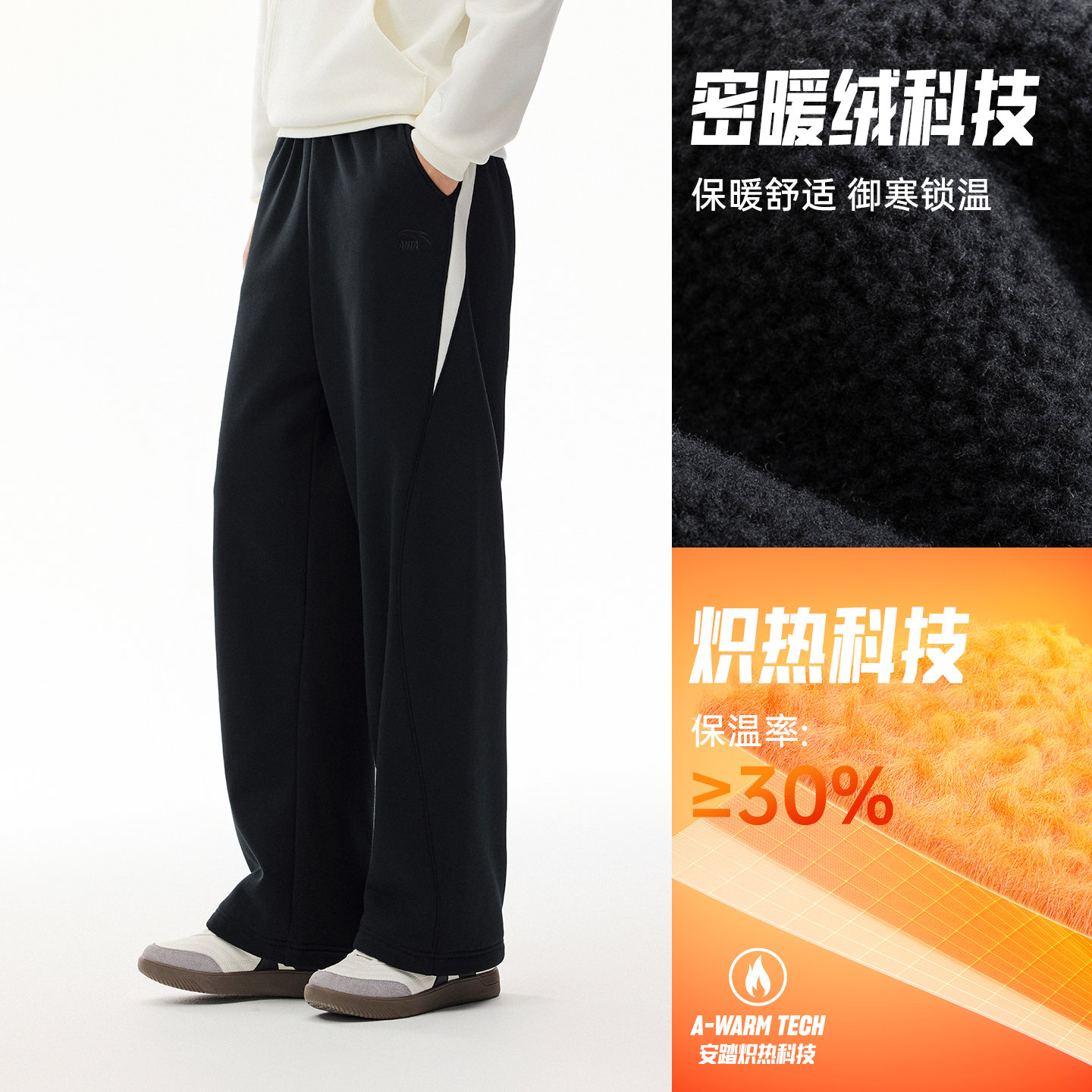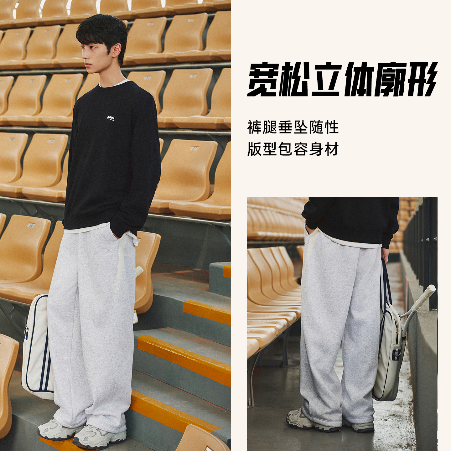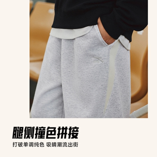 灰色卫裤 安踏休闲运动长裤 加绒保暖宽松阔腿直筒裤 新款 男2025冬季