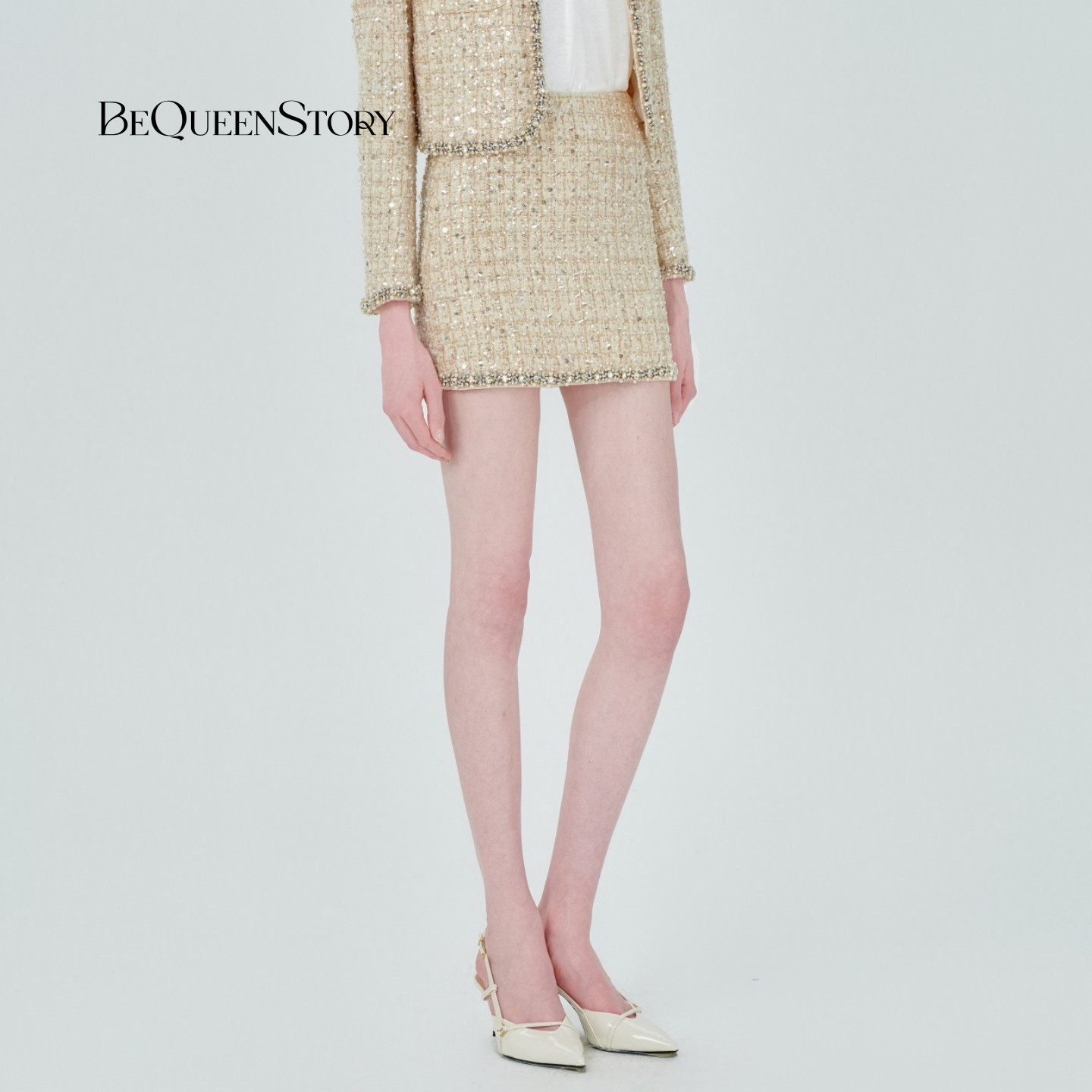 BeQueenStory2025早秋金满钻亮片收腰半身裙短裙 徐如蓝恋综同款