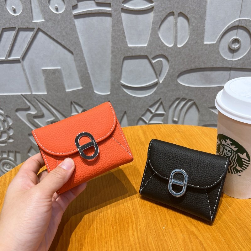 稻草人钱包女士新款 牛皮简约钱夹零钱包女生卡包 真皮小众钱夹女式