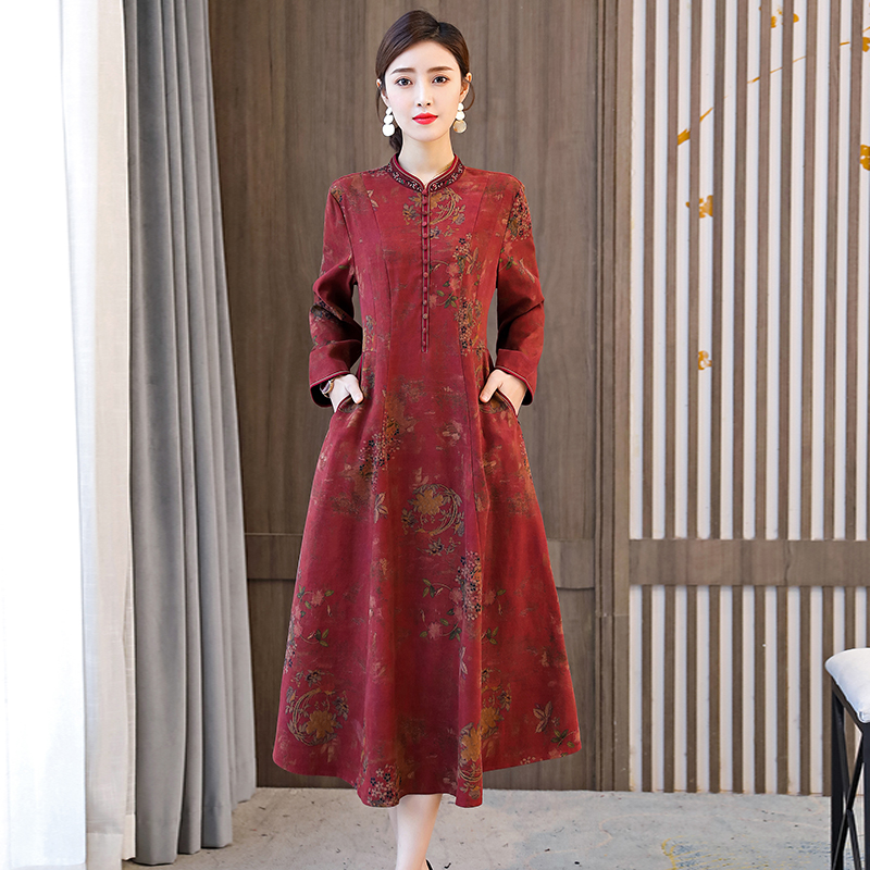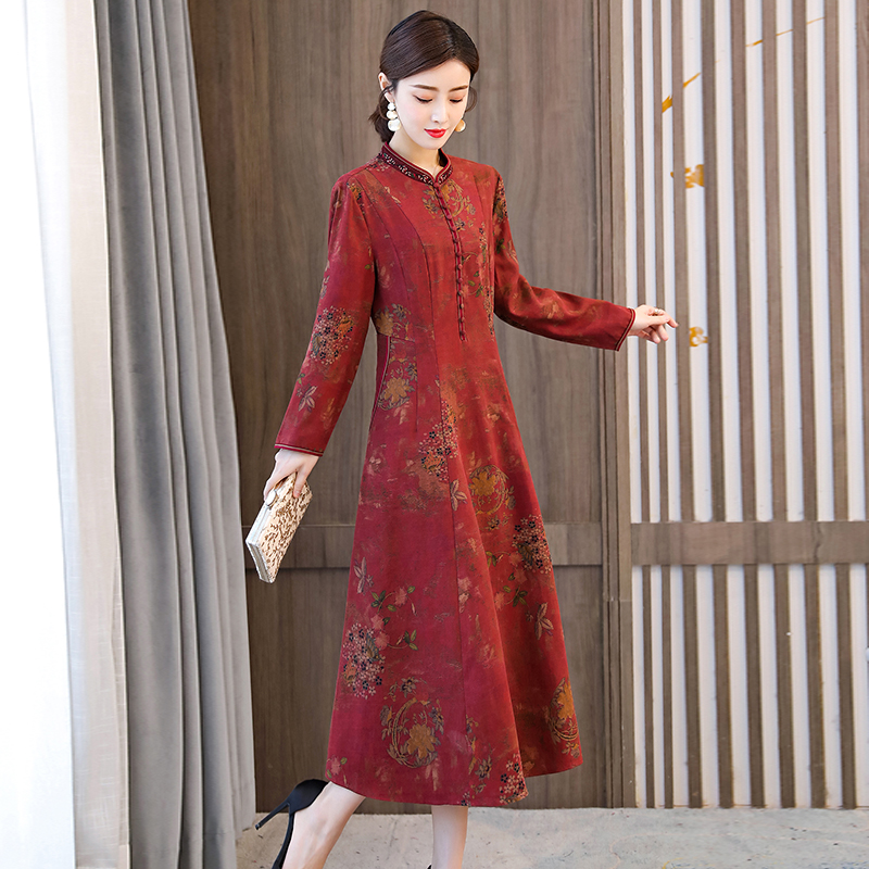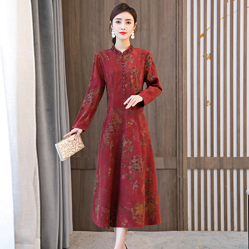 修身 桑蚕丝改良旗袍连衣裙长袖 妈妈大码 香云纱中长款 2025春秋新款