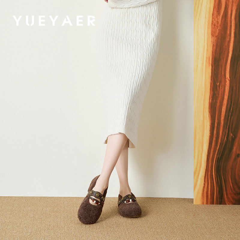 时尚 秋冬季 平底法式 豆豆鞋 玛丽珍 月芽儿毛毛鞋 保暖棉鞋 女2025新款
