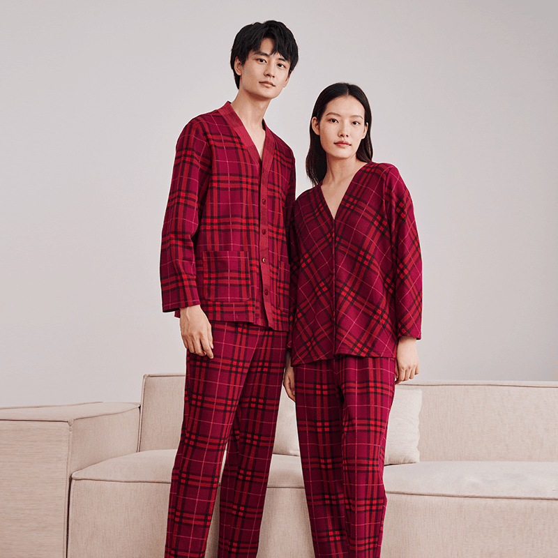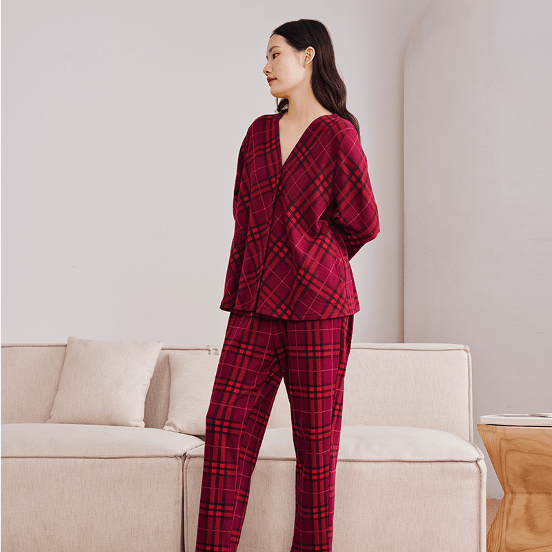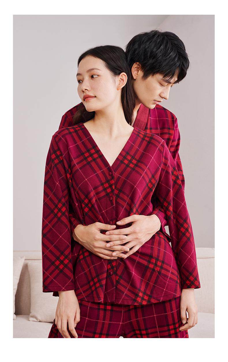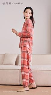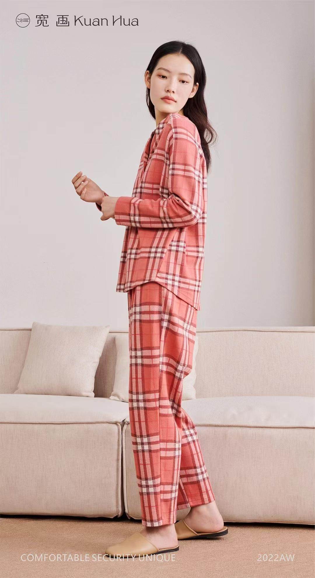 女款 ·格纹 开衫 红格冬款 KH96616 宽画 家居服柔软舒适睡衣 经典