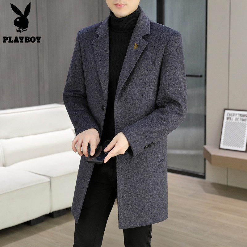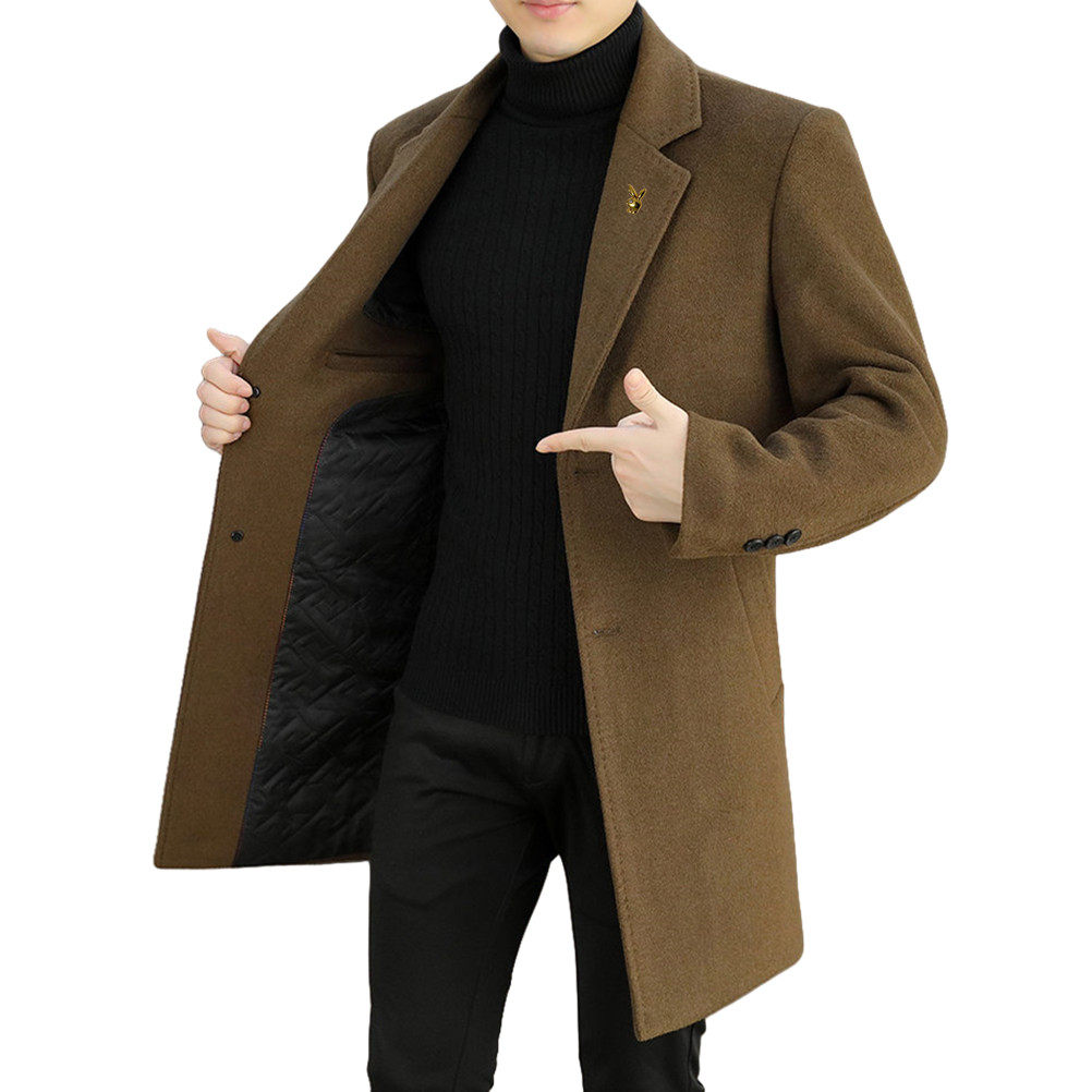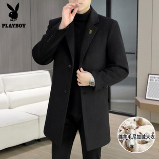 韩版 长款 呢子加厚风衣外套 2025春秋季 V37黑色高级感毛呢大衣男款
