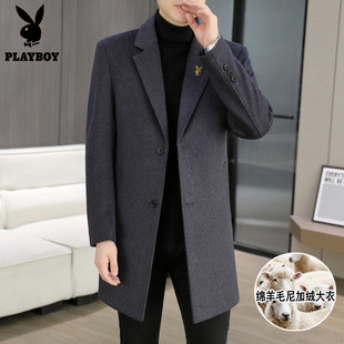 过膝无羊绒呢子风衣外套韩版 毛呢大衣男中长款 宽松落肩 新款 秋冬季