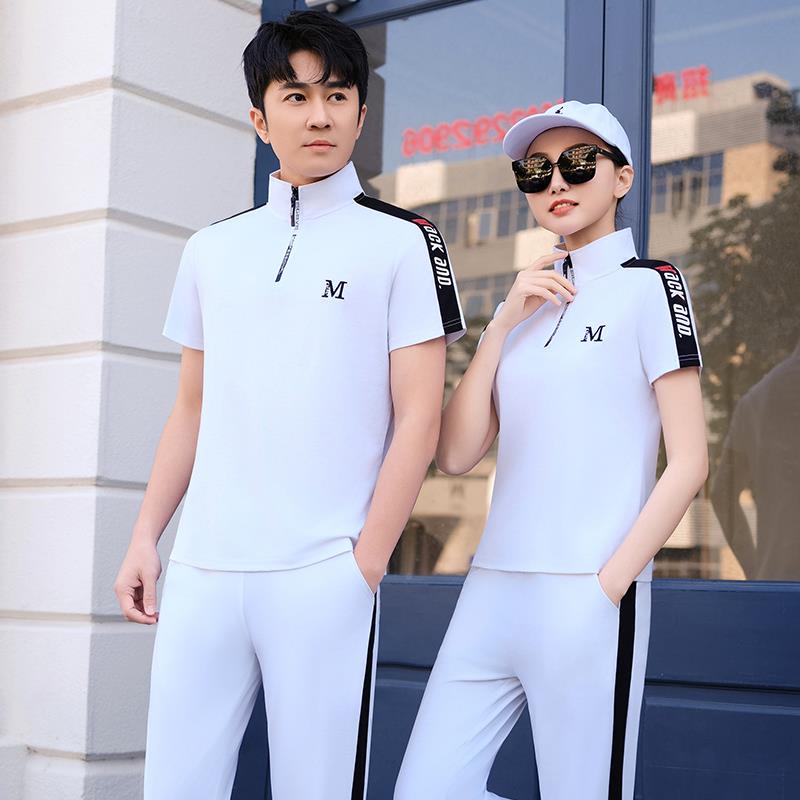 新款 夏跑季 短袖 两件韩版 休女 冰丝运套动套装 男情侣8989455装 男士