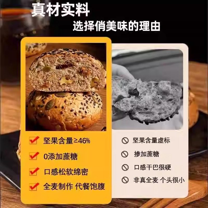 八宝坚果欧包无糖精0减低代餐轻面包食品全麦粗粮健康早餐整箱..