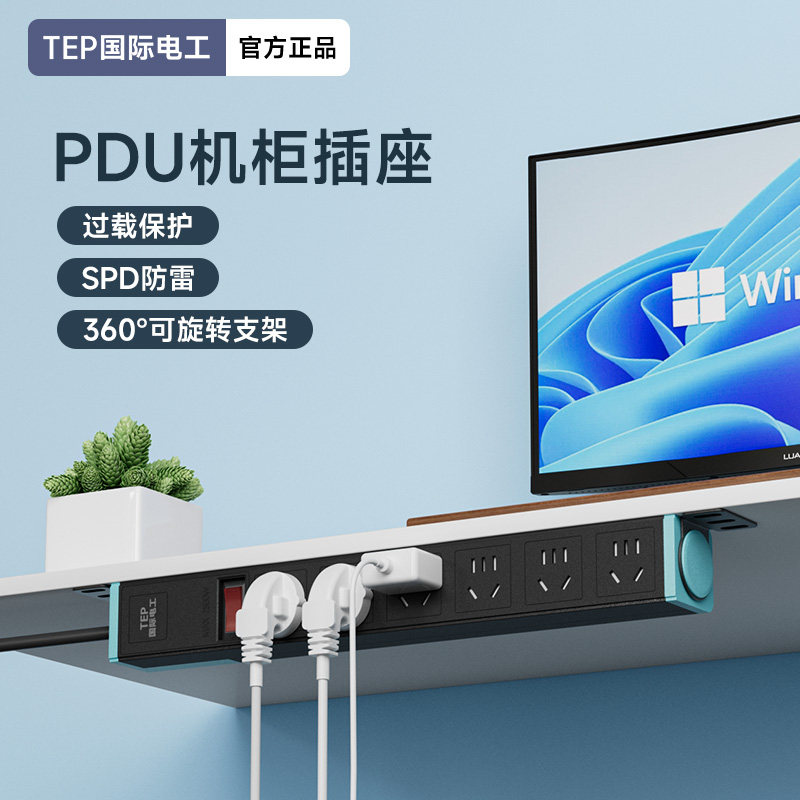 国际电工pdu机柜插座机房排插桌下面电竞防雷插线板过载工业插排