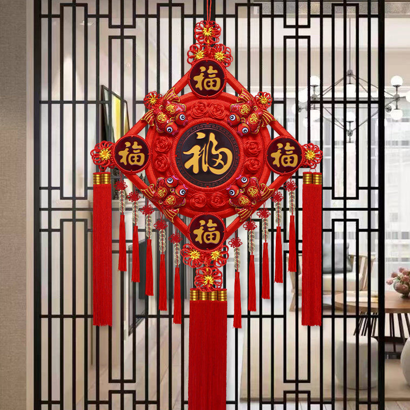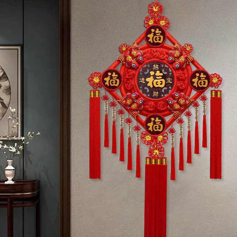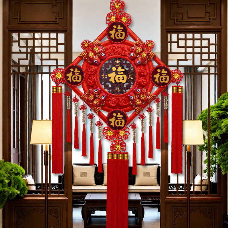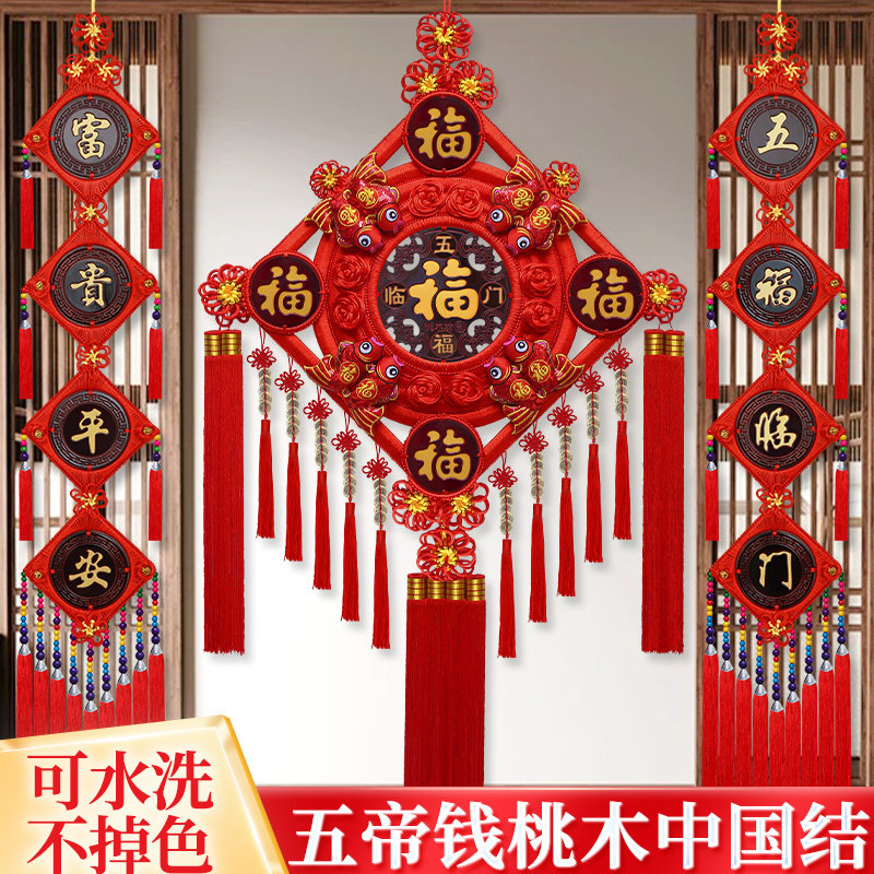 2025新款 饰 中国结挂件桃木大号福字五帝钱挂饰客厅玄关电视墙装
