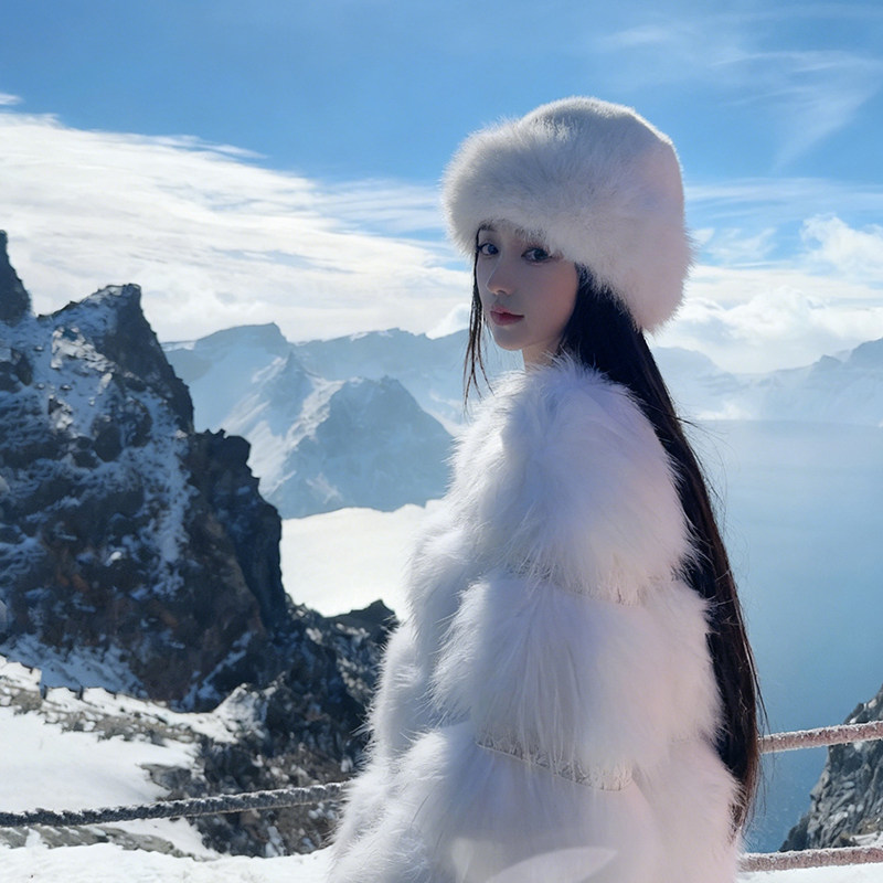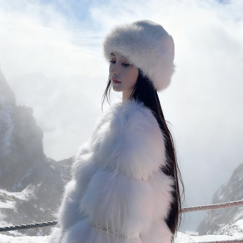 畹町小脸感呼吸针织帽女复古时尚 秋冬保暖加绒抗静电花纱堆堆帽子