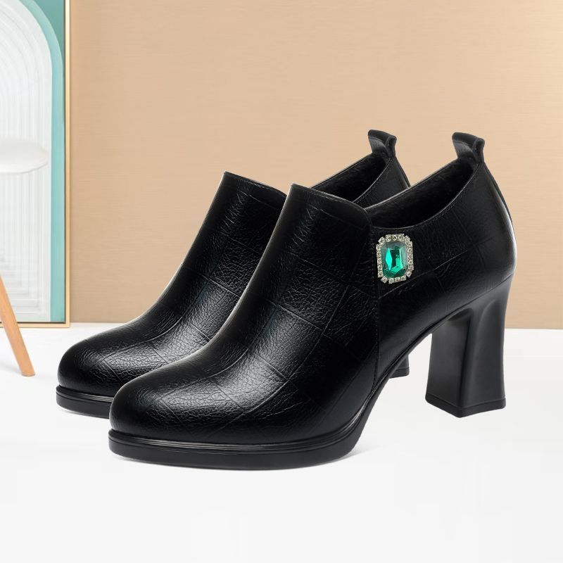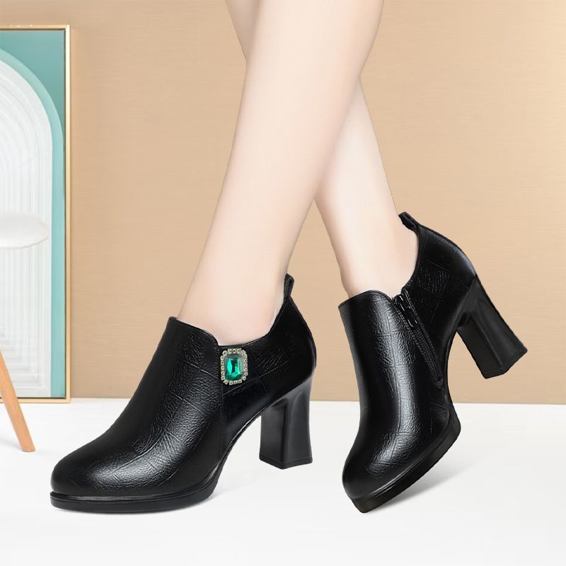 洋气厚底模特走秀女鞋 中年女士粗跟皮鞋 时尚 2025舒适深口圆头单鞋